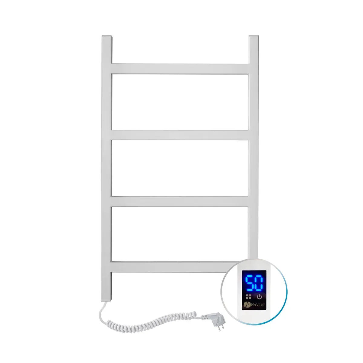 Рушникосушка Nordic 500х800 Sensor (колір — білий оксамит; розташування шнура з вилкою — ліворуч) від українського виробника NAVIN виготовлена з вуглецевої сталі, яка відрізняється високою якістю й міцністю. Модель має надійне порошкове покриття. Товщина стінки колекторів (стійок) і перемичок сушки для рушників дорівнює 1,5 мм.