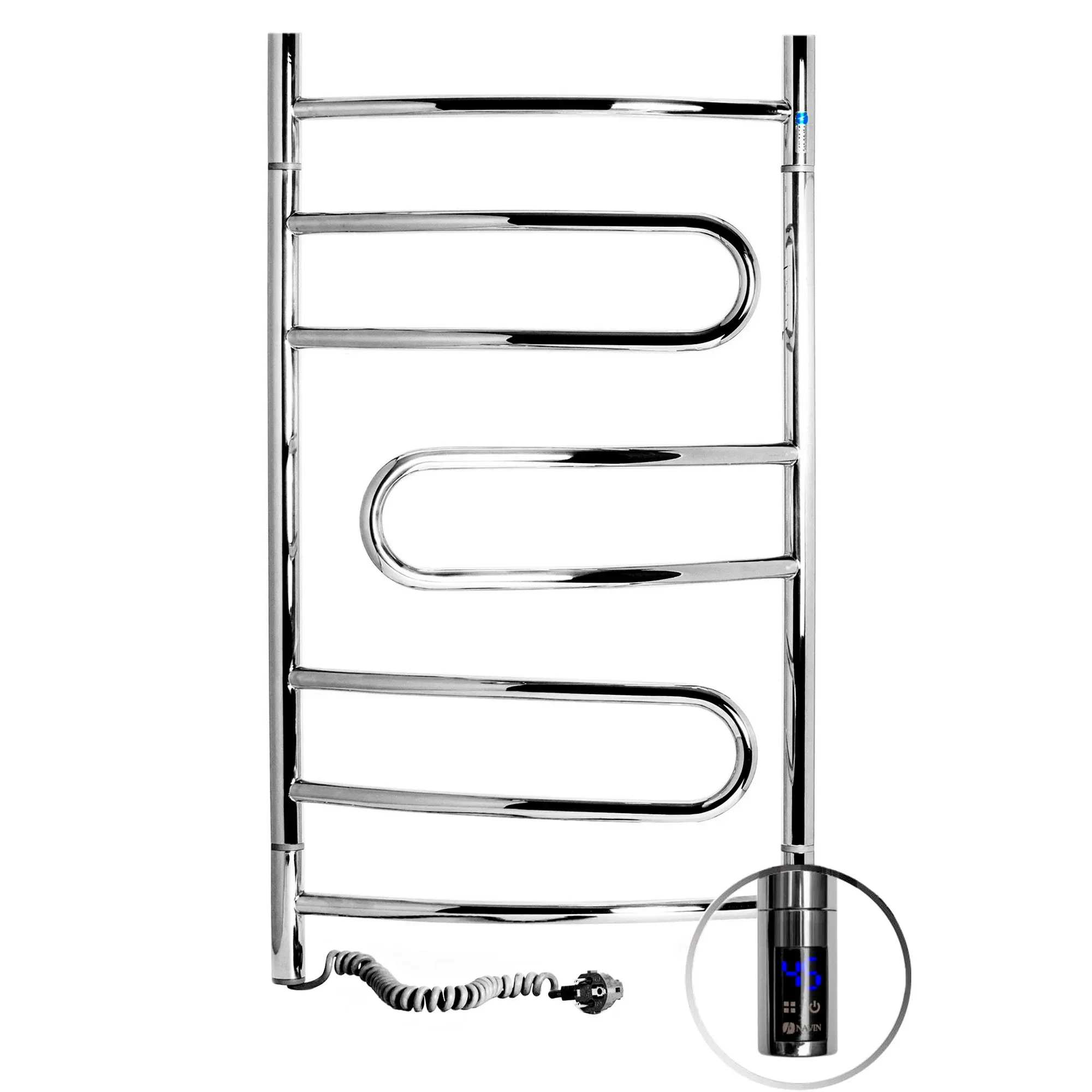 Електрична рушникосушка Пірует 480х800 поворотна сенсор з таймером, від українського виробника NAVIN виготовлена з нержавіючої сталі, яка є стійкою до подряпин і механічних пошкоджень, а також володіє високою антикорозійною стійкістю. Товщина стінки перемичок рушникосушарки складає 1,5 мм, а стійок 2 мм. Рушникосушка має дзеркальну поліровану поверхню, отриману шляхом високоточного електроплазмового полірування.