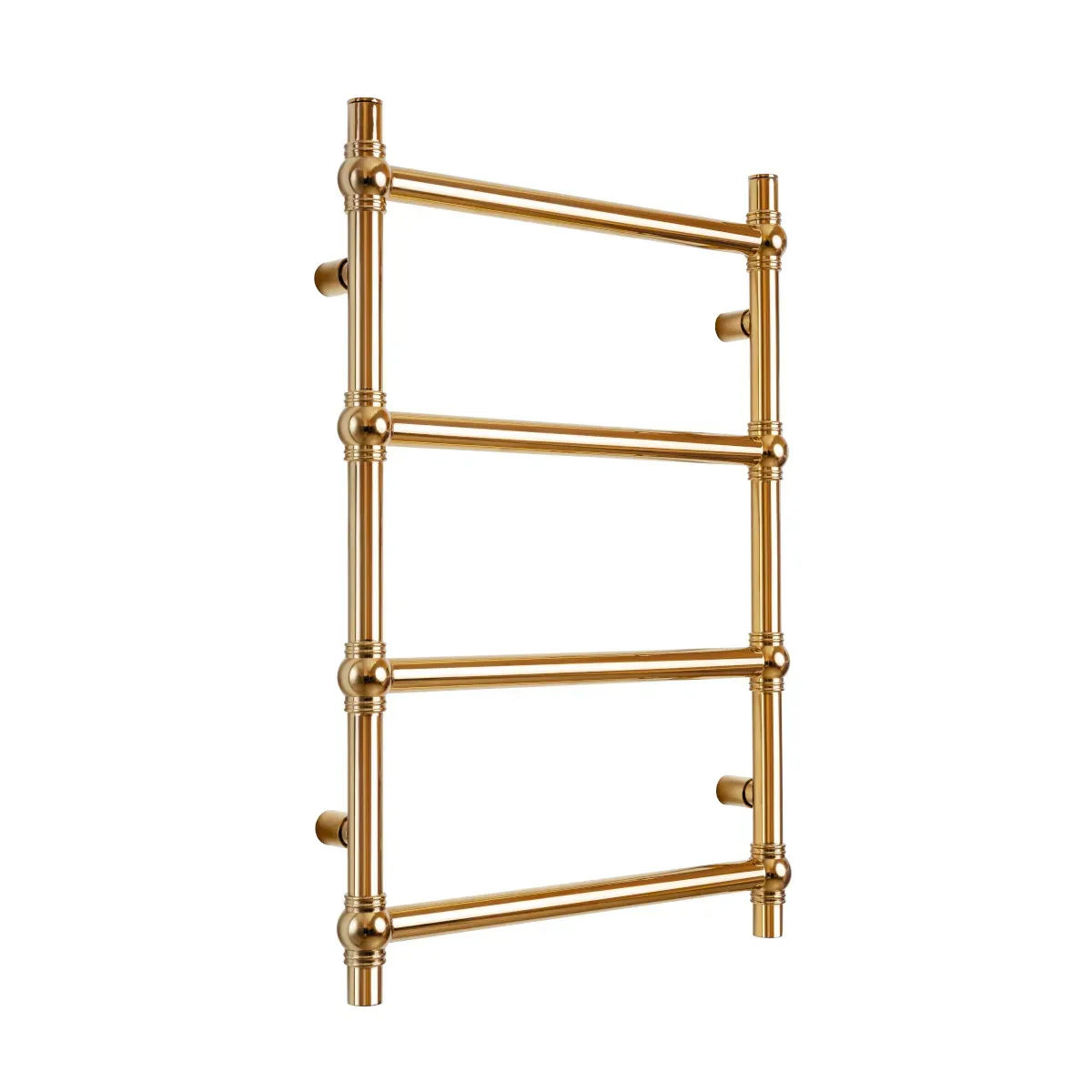 Водяна сушарка для рушників Ретро 500х800 Золото має дивовижний старовинний дизайн, який наповнить інтер'єр вашої ванної кімнати аристократичним спокоєм і затишною вікторіанською атмосферою періоду XIX і початку XX століття. Модель виконана з труби діаметром 32 мм, оздобленої стильними декоративними потовщеннями в місцях перетину елементів сушарки.