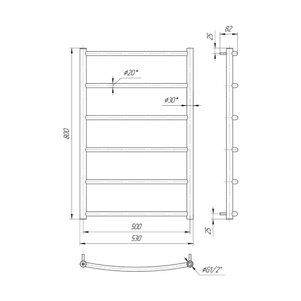 Діаметр: стійка Ø30, товщина 2мм; перемичка Ø20, товщина 1,5 мм