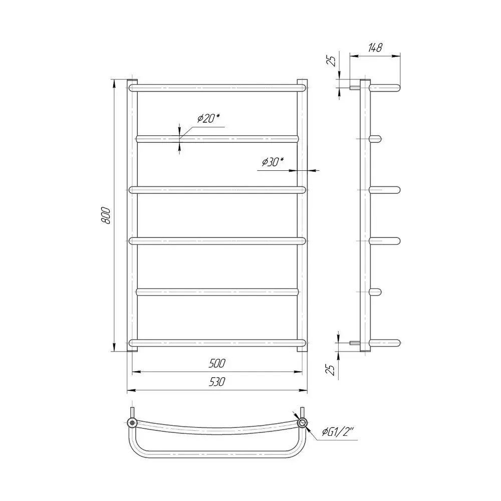 Діаметр: стійка Ø30, товщина 2мм; перемичка Ø20, товщина 1,5 мм