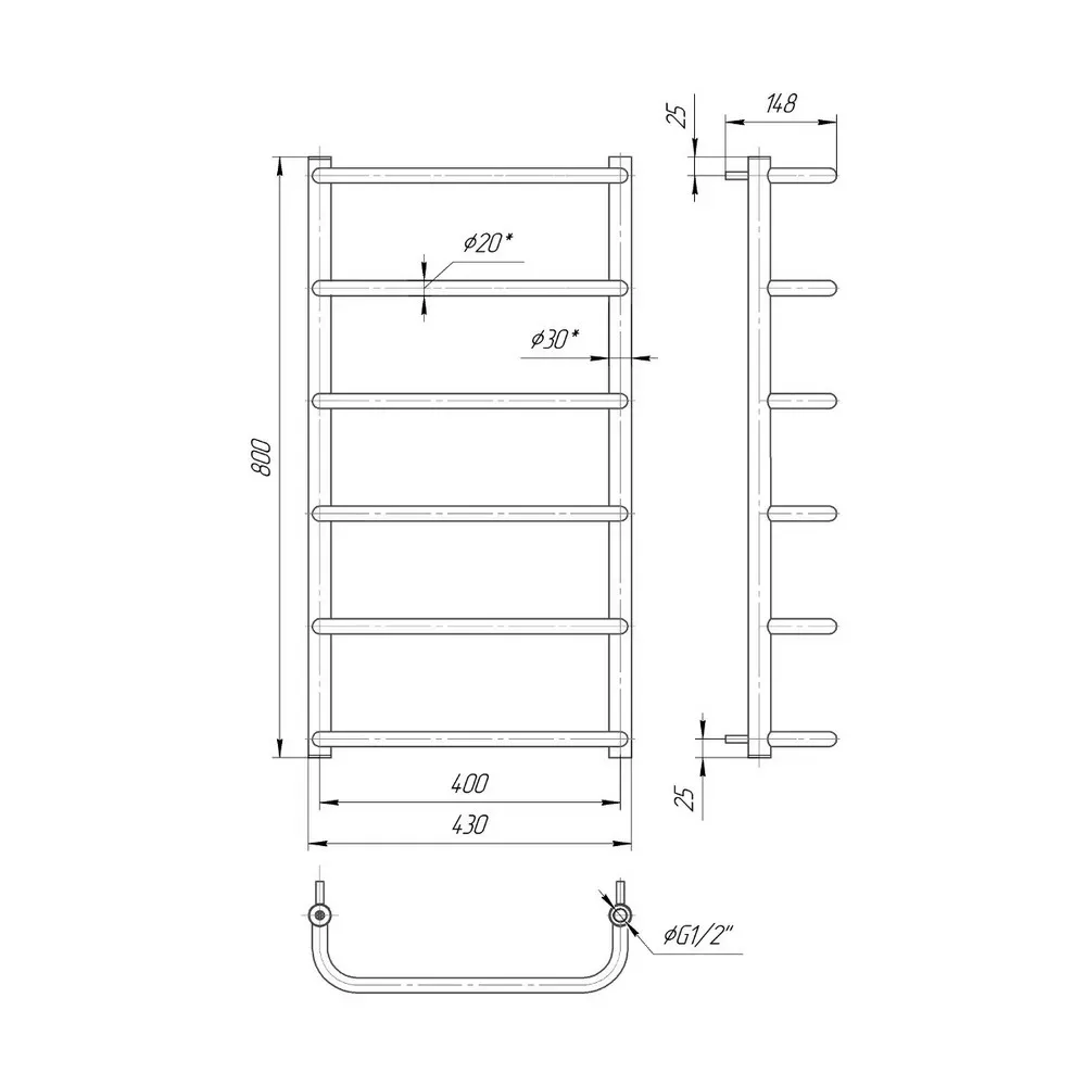 Діаметр: стійка Ø30, товщина 2мм; перемичка Ø20, товщина 1,5 мм