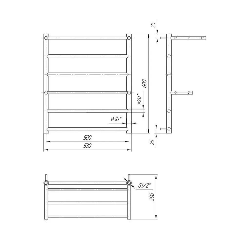 Діаметр: стійка Ø30, товщина 2мм; перемичка Ø20, товщина 1,5 мм