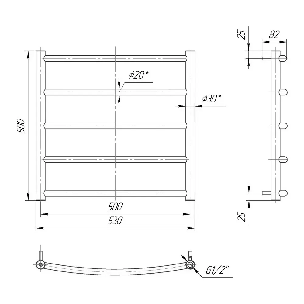 Діаметр: стійка Ø30, товщина 2мм; перемичка Ø20, товщина 1,5 мм