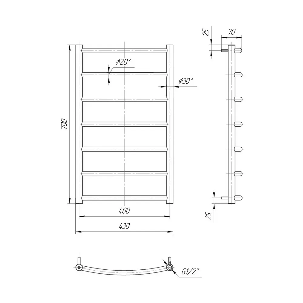 Діаметр: стійка Ø30, товщина 2мм; перемичка Ø20, товщина 1,5 мм