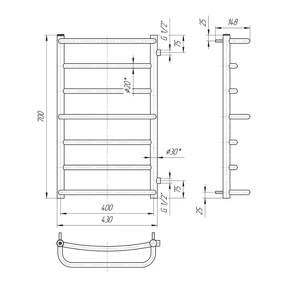 Рушникосушка Mario Люкс, бічне підключення. Привабливий дизайн з високою функціональністю - це радіатори Mario ЛЮКС. Якщо ви віддаєте перевагу мінімалізму, а також, якщо в першу чергу звертаєте увагу на практичну сторону рушникосушок, то радіатори ЛЮКС створені саме для вас, адже особливості конструкції радіатора дають можливість використовувати його з максимальною користю для сушіння білизни, причому сушити можна не тільки маленькі речі, але й великі! Рушникосушка має кілька перекладин, на які одночасно можна розташувати кілька рушників, білизну або якісь інші дрібні речі.