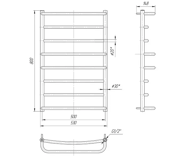Діаметр: стійка Ø30, товщина 2мм; перемичка Ø20, товщина 1,5 мм