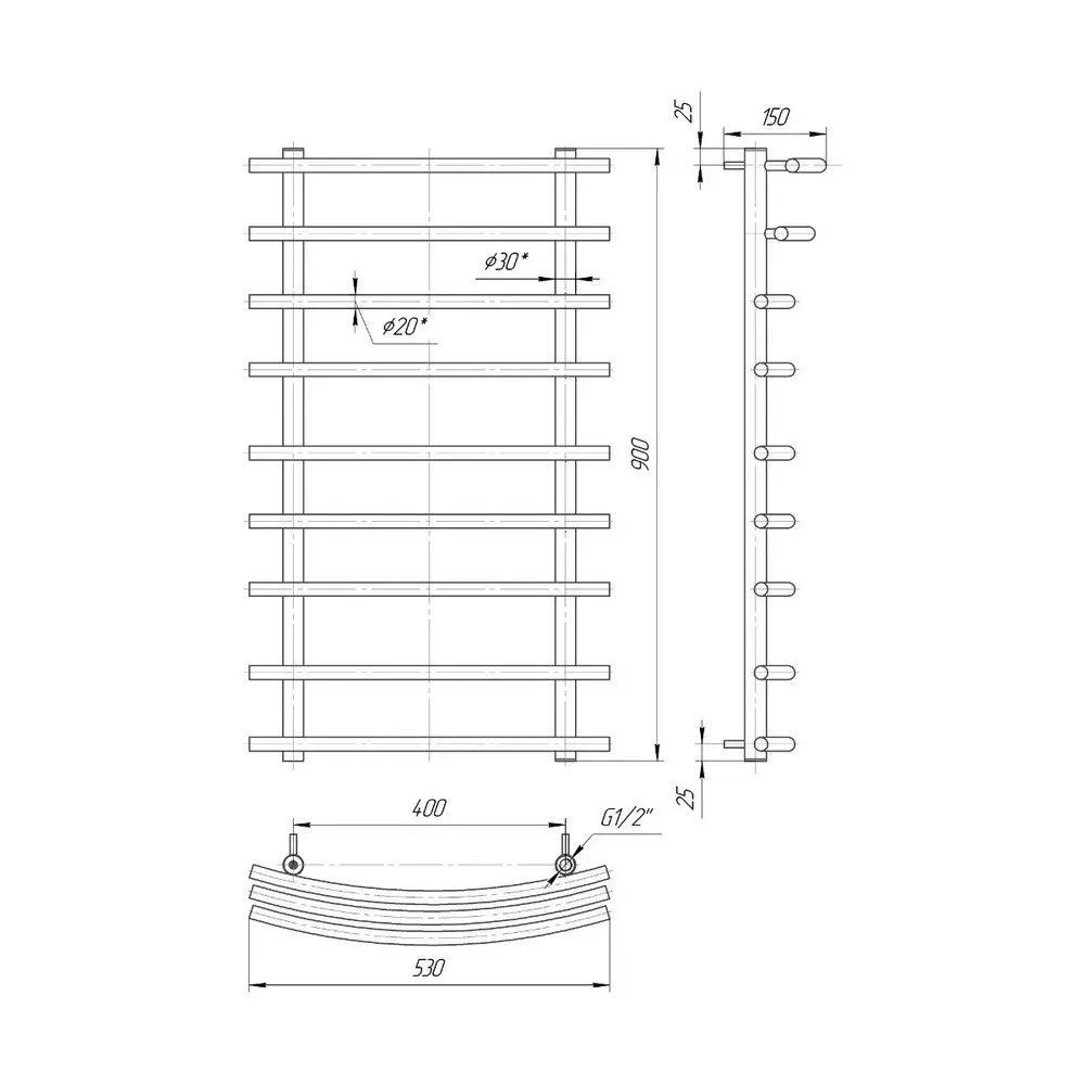 Діаметр: стійка Ø30, товщина 2мм; перемичка Ø20, товщина 1,5 мм