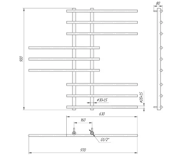 Діаметр: стійка Ø30, товщина 1,5 мм; перемичка Ø20, товщина 1,5 мм