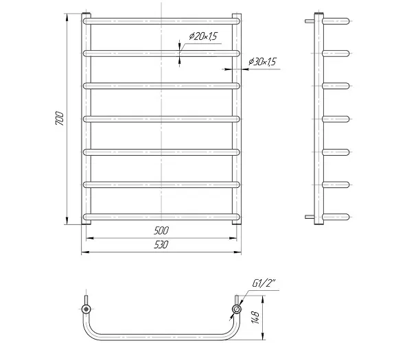 Діаметр: стійка Ø30, товщина 1,5 мм; перемичка Ø20, товщина 1,5 мм