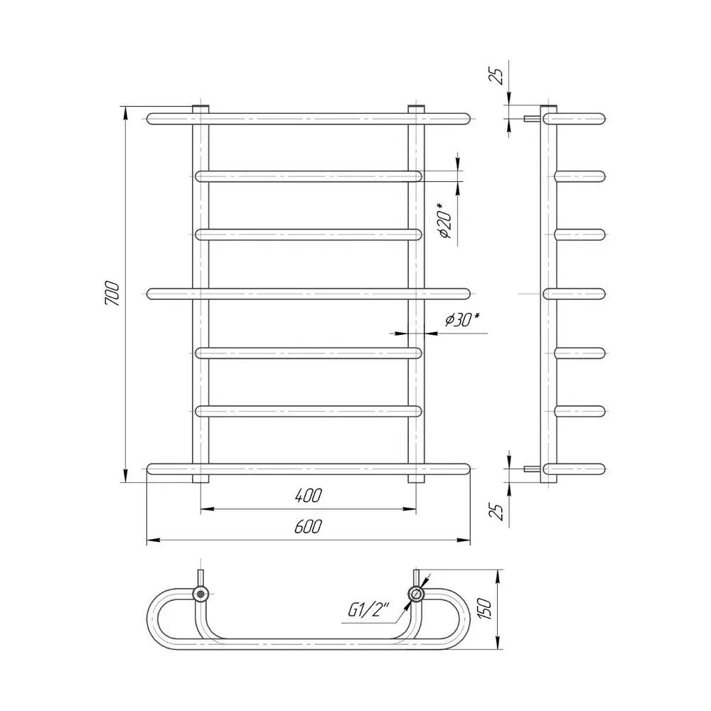 Діаметр: стійка Ø30, товщина 2мм; перемичка Ø20, товщина 1,5 мм
