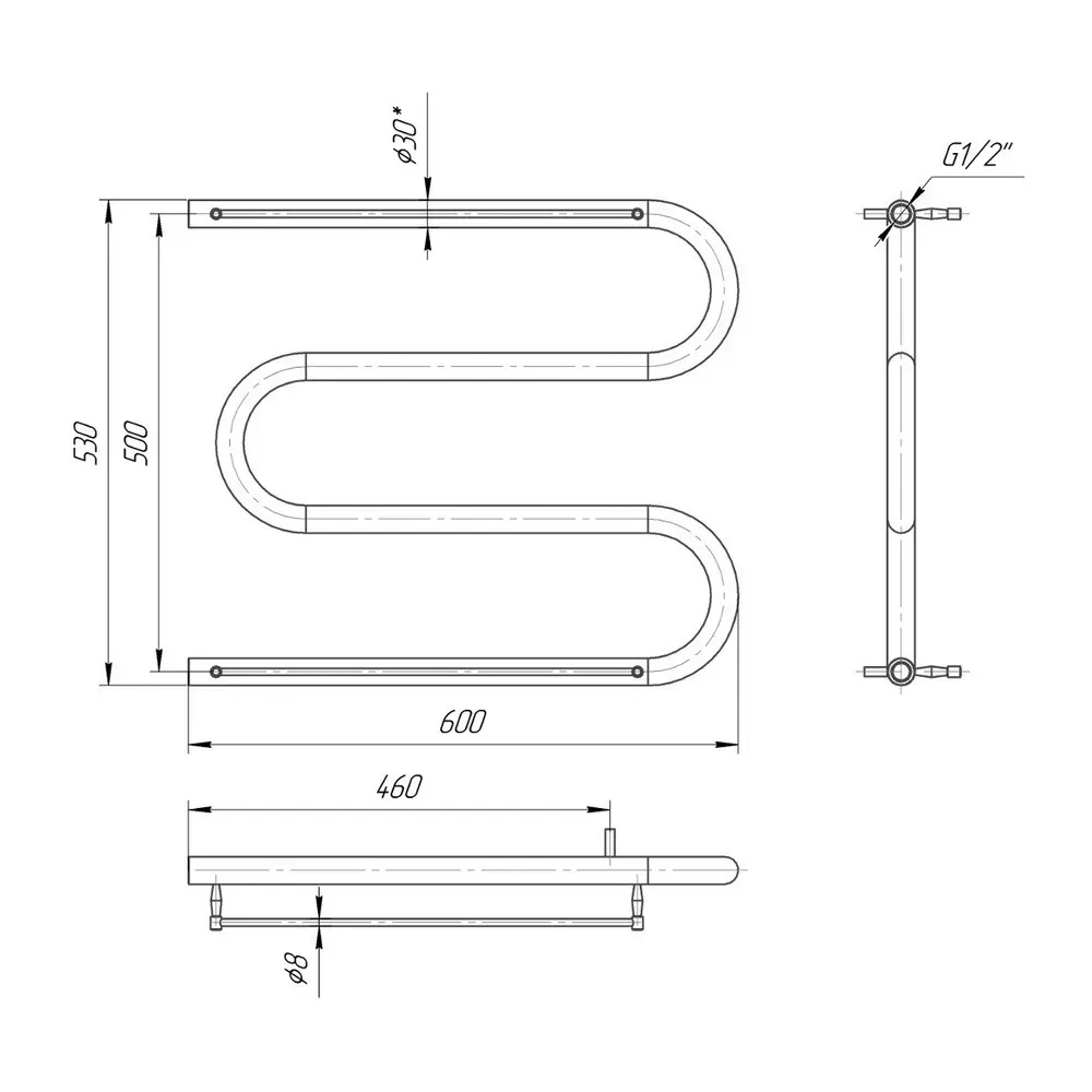 Рушникосушка mario змійка + полички 530х600 ∅30