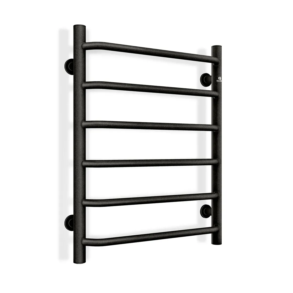 Водяна рушникосушка Navin Блюз 500х600 від українського виробника NAVIN виготовлена з харчової нержавіючої сталі, яка є стійкою до подряпин і механічних пошкоджень, а також володіє високою антикорозійною стійкістю. Модель має порошкове покриття кольору чорний муар. Товщина стінки рушникосушки становить 2 мм.