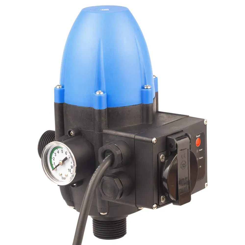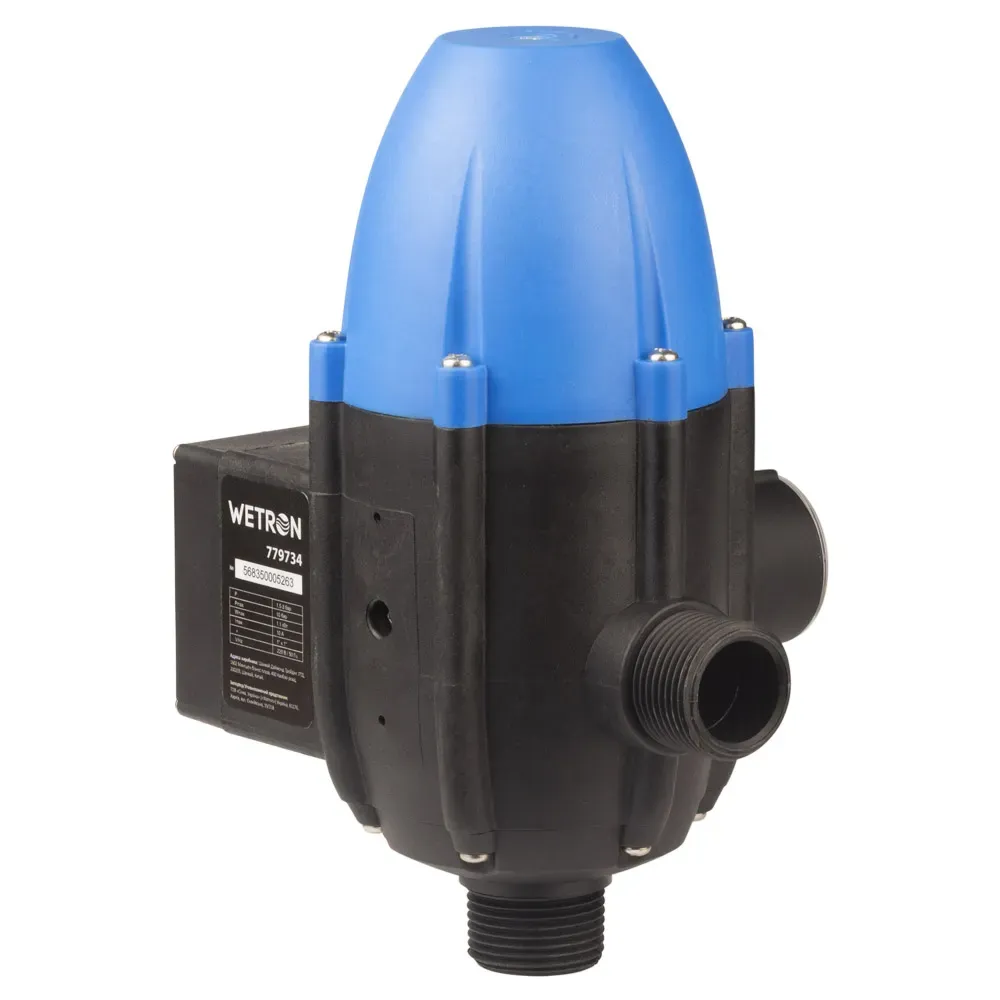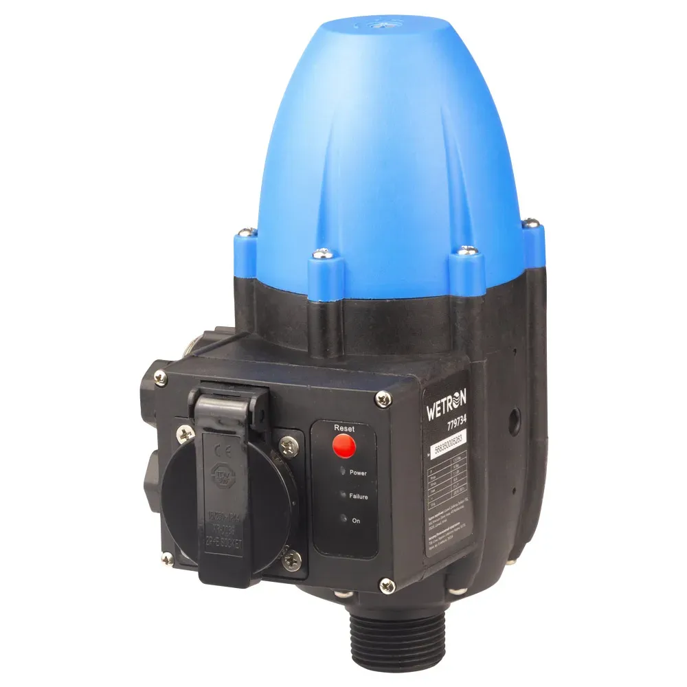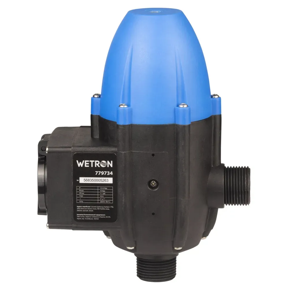 Контролер тиску електронний 1.1кВт Ø1" рег. тиск вкл 1.5-3.0 бар + розетка та вилка WETRON (779734) призначений для автоматичного керування електронасосом у системах водопостачання. Дозволяє підтримувати постійний тиск у водопровідній системі.