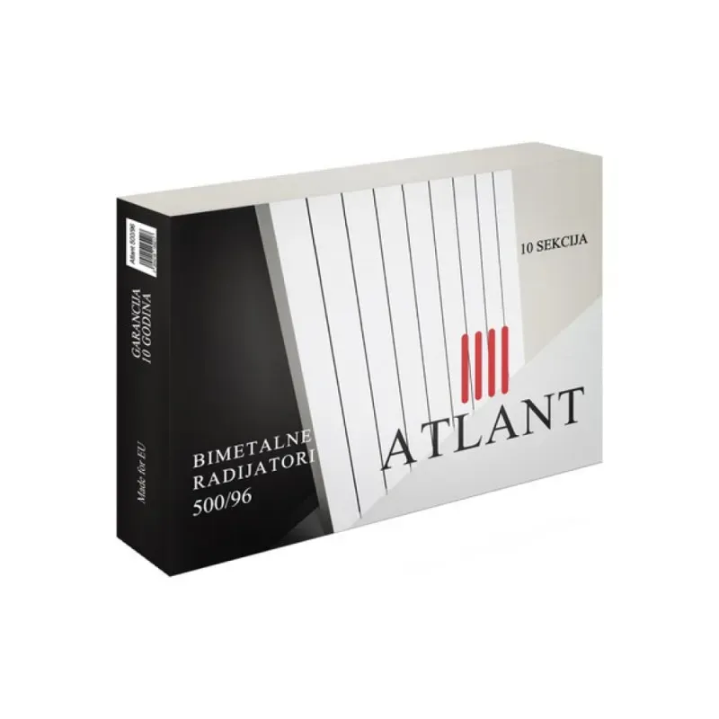 Радіатор біметал Atlant поєднує в собі переваги алюмінієвих і сталевих батарей: підвищену міцність і високий рівень тепловіддачі. Завдяки застосуванню передових технологій опалювальні прилади Atlant стійкі до корозії, надійні і довговічні. Матеріали, які застосовуються для фарбування поверхонь, повністю безпечні та не виділяють шкідливих речовин при нагріванні.