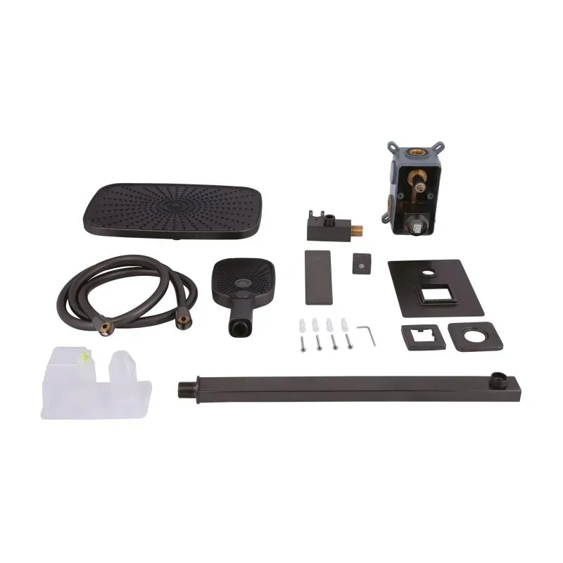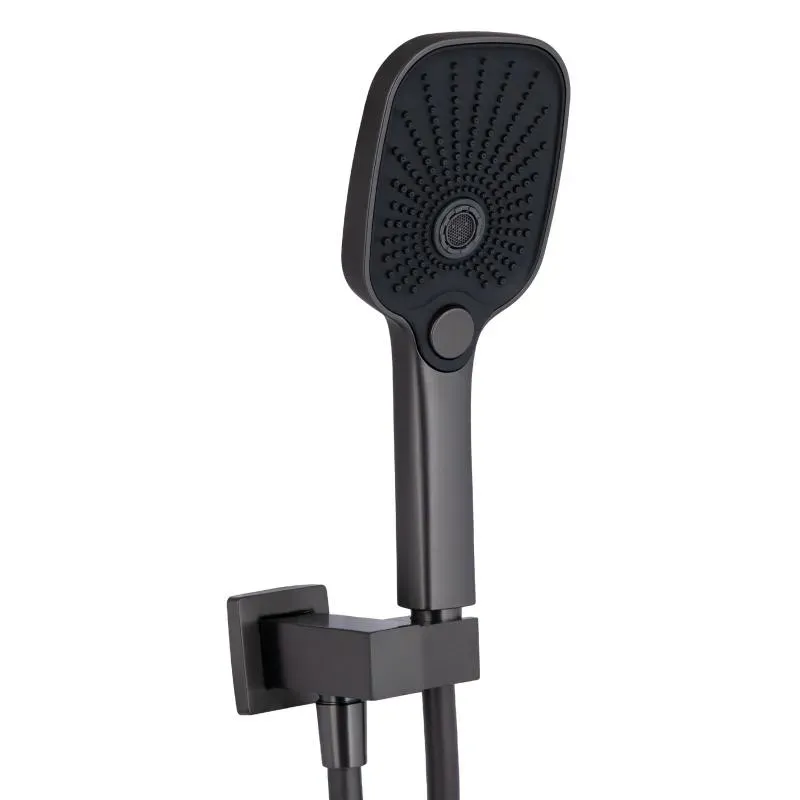 Душова система для душу прихованого монтажу на два споживачі Qtap Gemini QTGEM113GMB45698 у виконанні Gunmetal Black PVD відрізняється стильним дизайном та високою міцністю. Система включає верхній та ручний душ, що робить її зручним та функціональним рішенням для ванної кімнати. Покриття Gunmetal Black PVD стійке до корозії та зносу, забезпечуючи тривалий термін служби виробу.