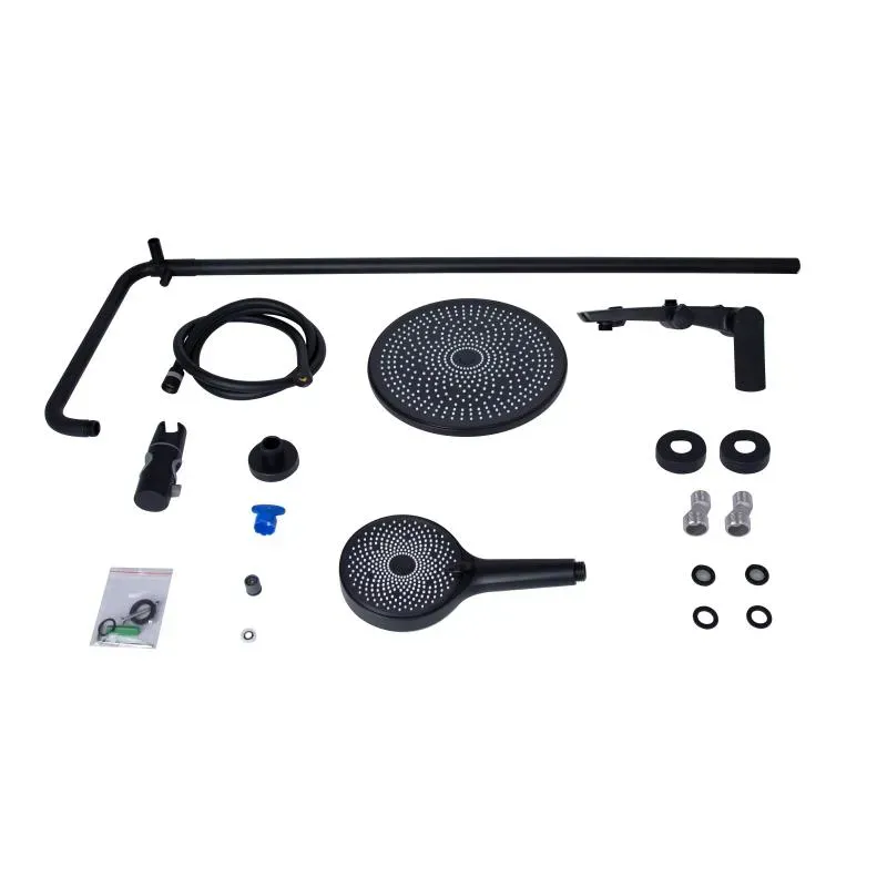 Душова система Qtap Slavonice QTSLA110BLM45914 у матовому чорному виконанні призначена для використання двома споживачами: верхнім та ручним душем. Система поєднує в собі елегантність та функціональність, а матове чорне покриття захищає виріб від забруднень та надає йому сучасного вигляду.