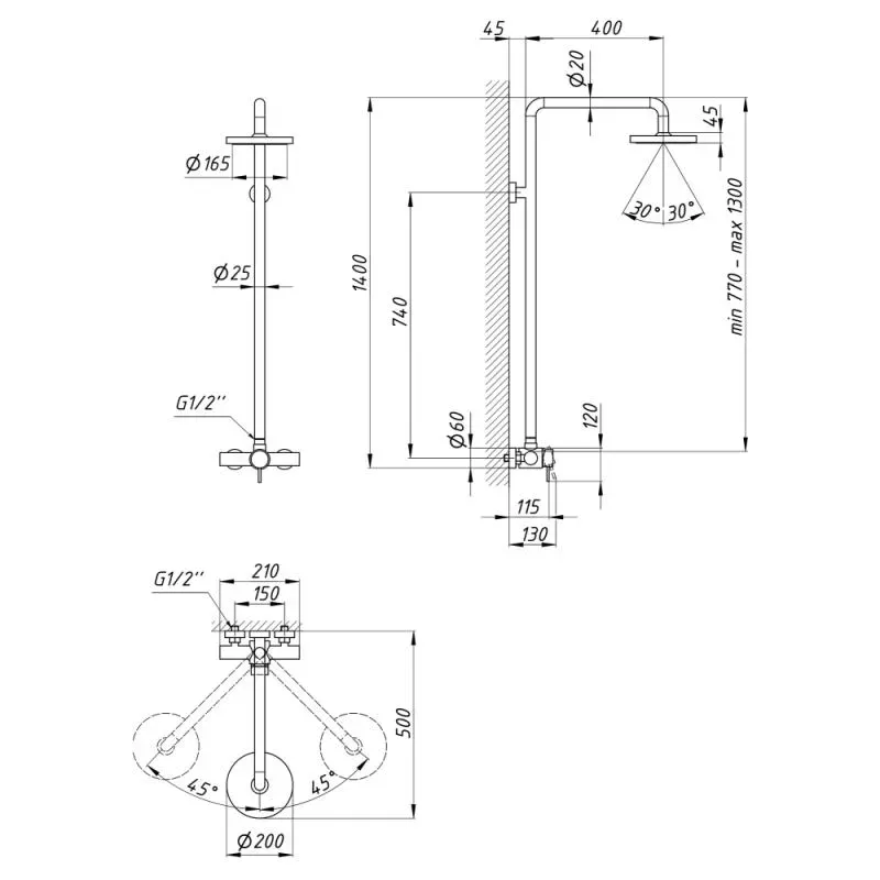 Душова система для кабіни lidz aria 1010 на одного споживача (k35) ldari1010nks34934 nickel