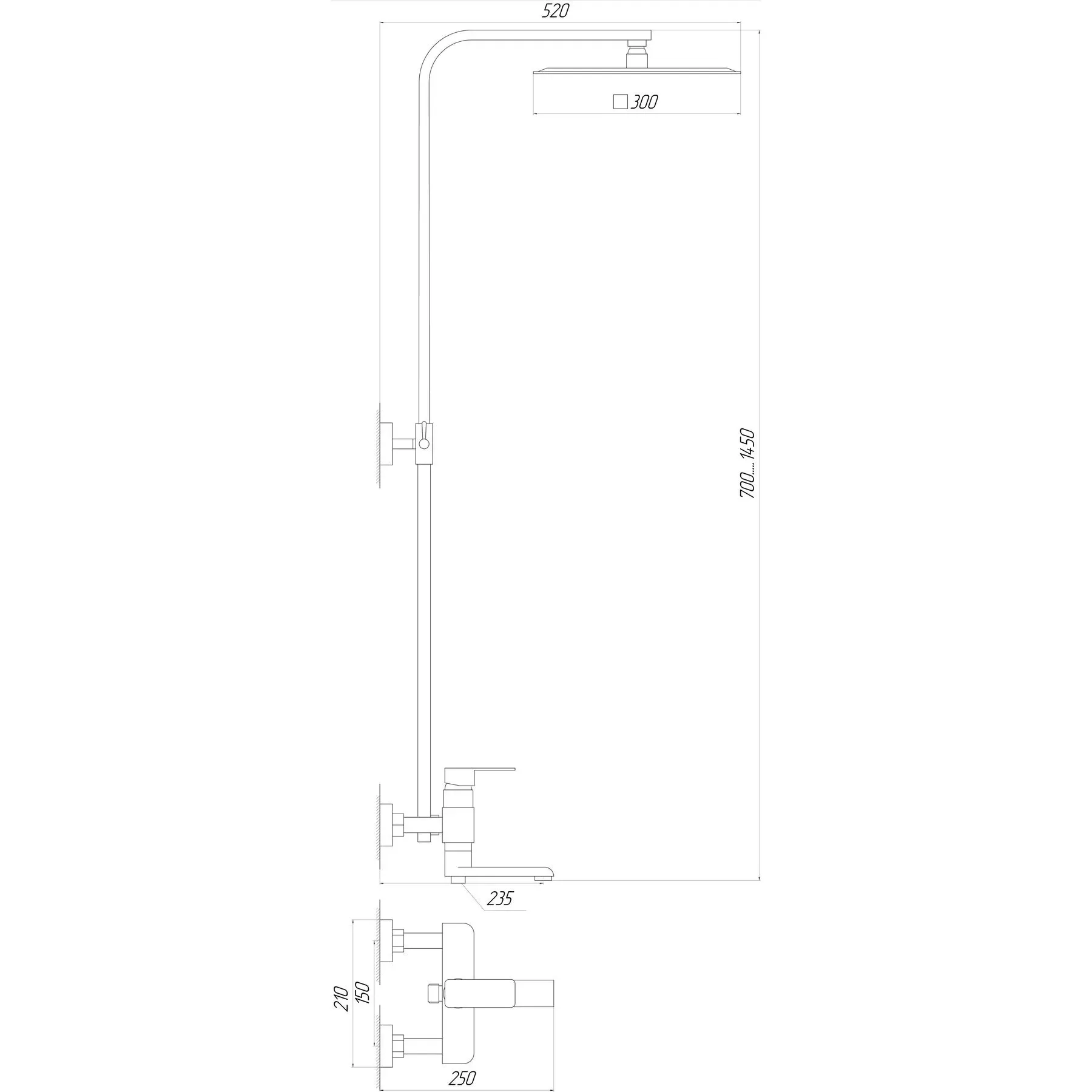- верхній душ - квадратна лійка 30х30 см, стійка