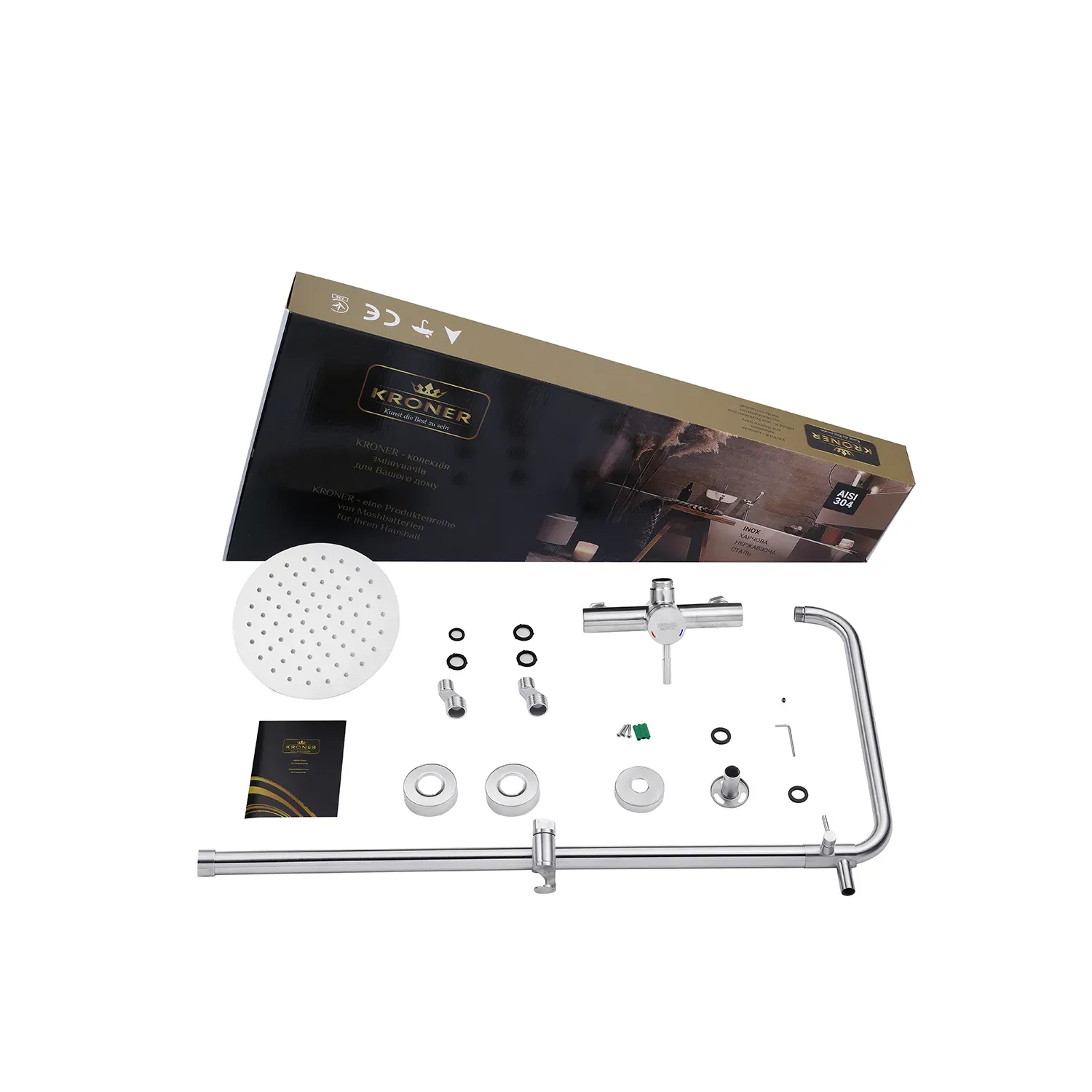 Душева система Kroner KRP Edelstahl Klassisch - ESG062 – незамінний атрибут для приємної та звичної для кожної людини гігієнічної процедури. До складу входить змішувач, верхній душ, зручна, регульована по висоті, душова стійка. Деталі виконані з високоякісної нержавіючої сталі, що підвищує експлуатаційний термін служби цієї душової системи.