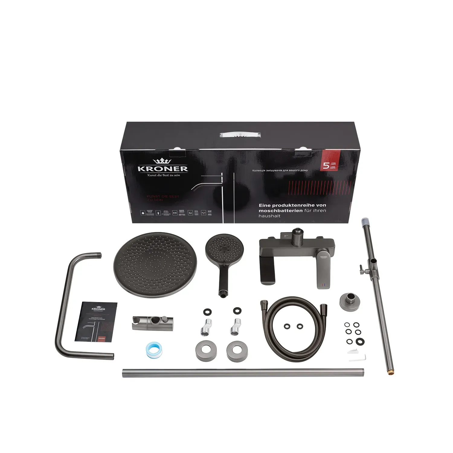 Душова система Kroner KRP Graz - GRP063 є високоякісним і стильним рішенням для вашої ванної кімнати. Вона надає вашій ванній функціональності, елегантності та сучасному дизайну, забезпечуючи при цьому зручність та комфорт під час водних процедур.