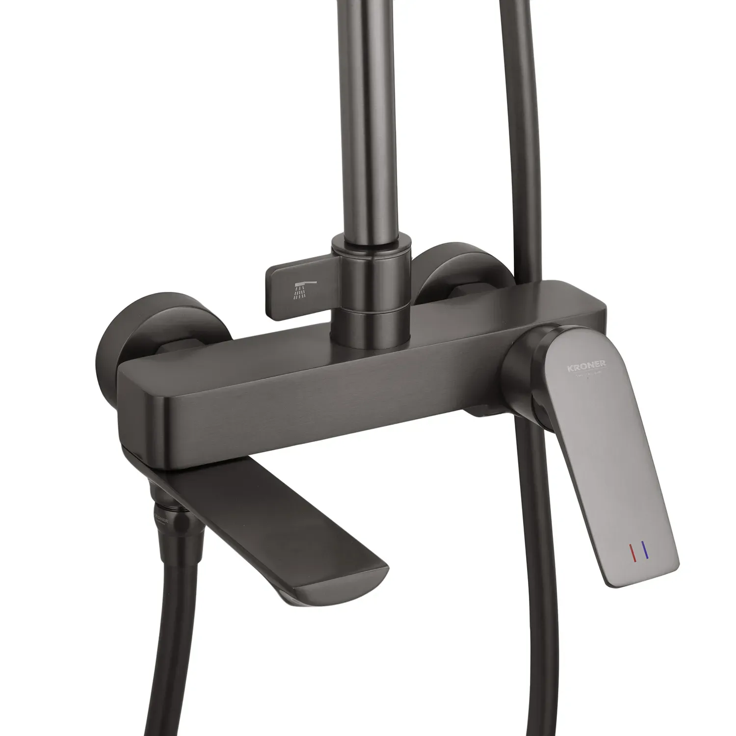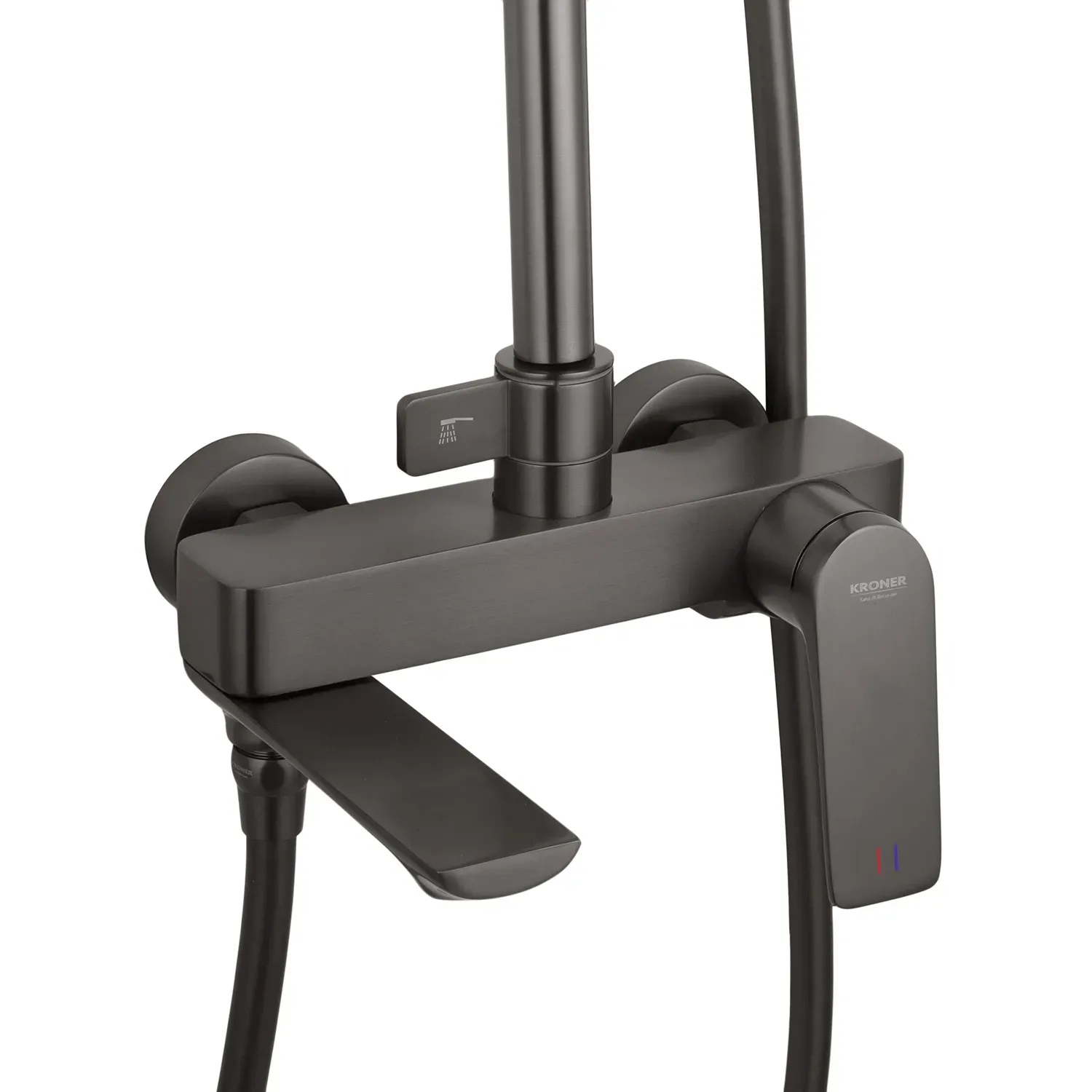 Виготовлена із міцної латуні, душова система Kroner KRP Graz - GRP063 обіцяє довгий термін служби та надійну роботу. Одноважільний тип управління забезпечує простоту та легкість регулювання температури та інтенсивності потоку води одним рухом руки. Поворотний тип виливу дозволяє точно спрямовувати потік води у потрібний напрямок, забезпечуючи максимальний комфорт під час душу.