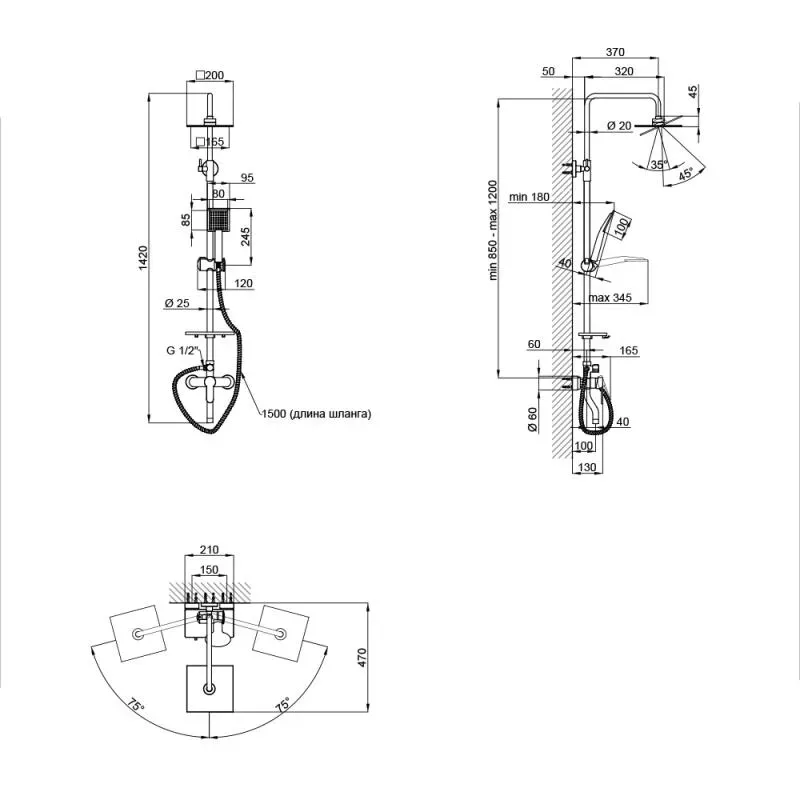 Душова система Qtap CRM 1005 забезпечить максимально комфортний прийом душу. Вона складається з телескопічної душової стійки з фіксованим верхнім і гнучким ручним душем, змішувача і полички. Тривалий термін служби забезпечують довговічна, зносостійка латунь, яка не підпадає під вплив іржі та міцний пластик, з яких виготовлено виріб.
