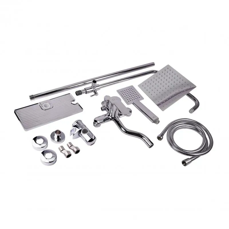 Душова система універсальна qtap plava на три споживача (з виливом) з полицею qt1005crm chrome
