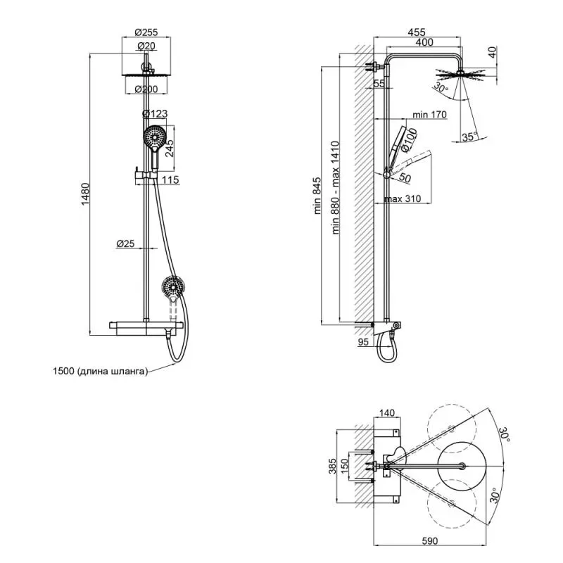 Душова система універсальна qtap sloup термостатична на два споживача з полицею qtsl57t105vogc chrom