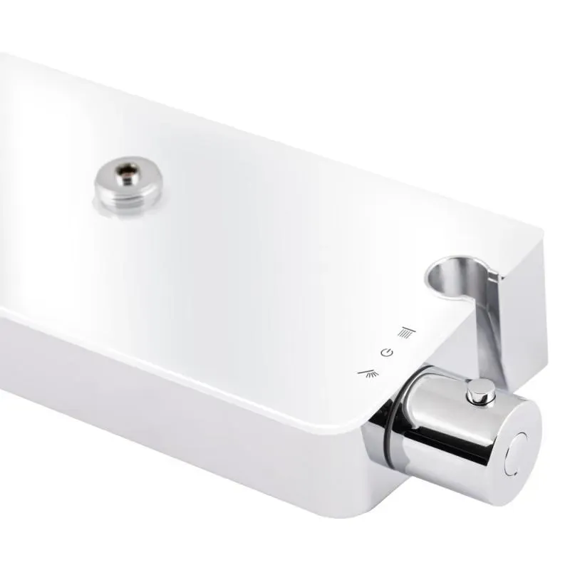 Душова система термостатична Qtap Sloup 57T105VOGC складається з душової стійки з верхнім і ручним душем, а також термостатичного змішувача. Лійка для ручного душу має 3 режими подачі води, а змішувач виконано у вигляді зручної дзеркальної полиці, на якій можна зберігати різні засоби. Виріб виготовлено з стійкою латуні і міцного пластику, що дозволить продовжити термін експлуатації. Завдяки кріпильним деталям, якими комплектується виріб встановлення не займе багато часу.