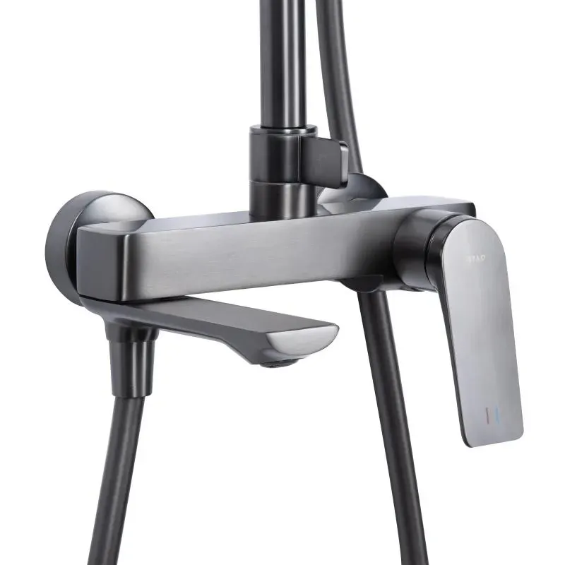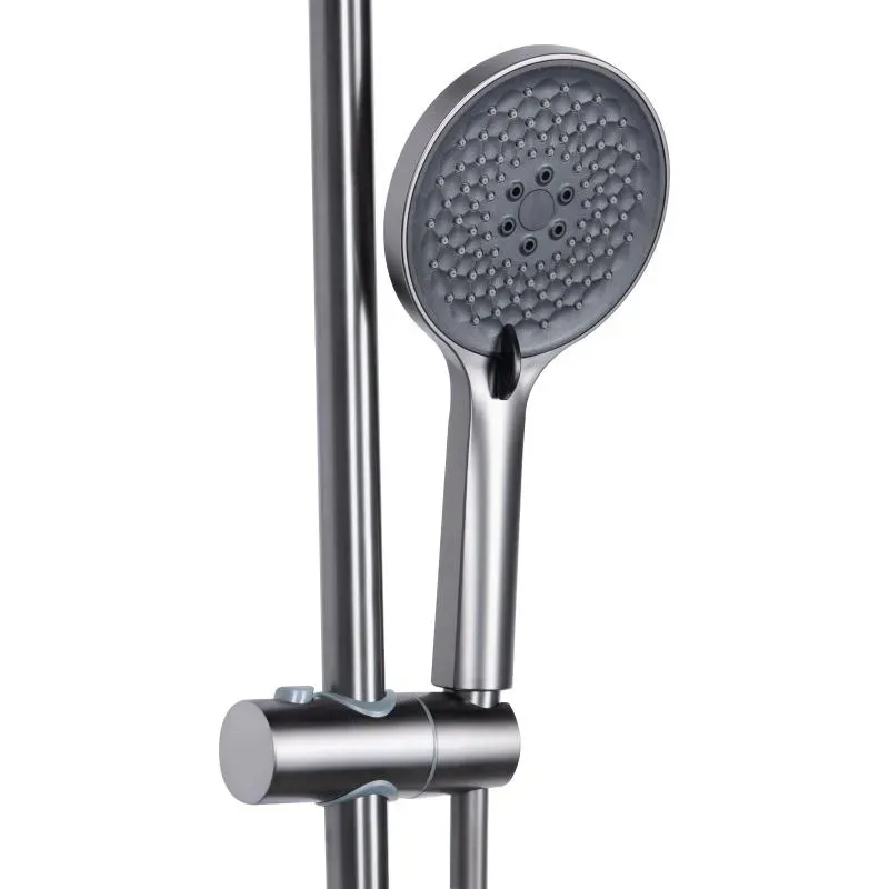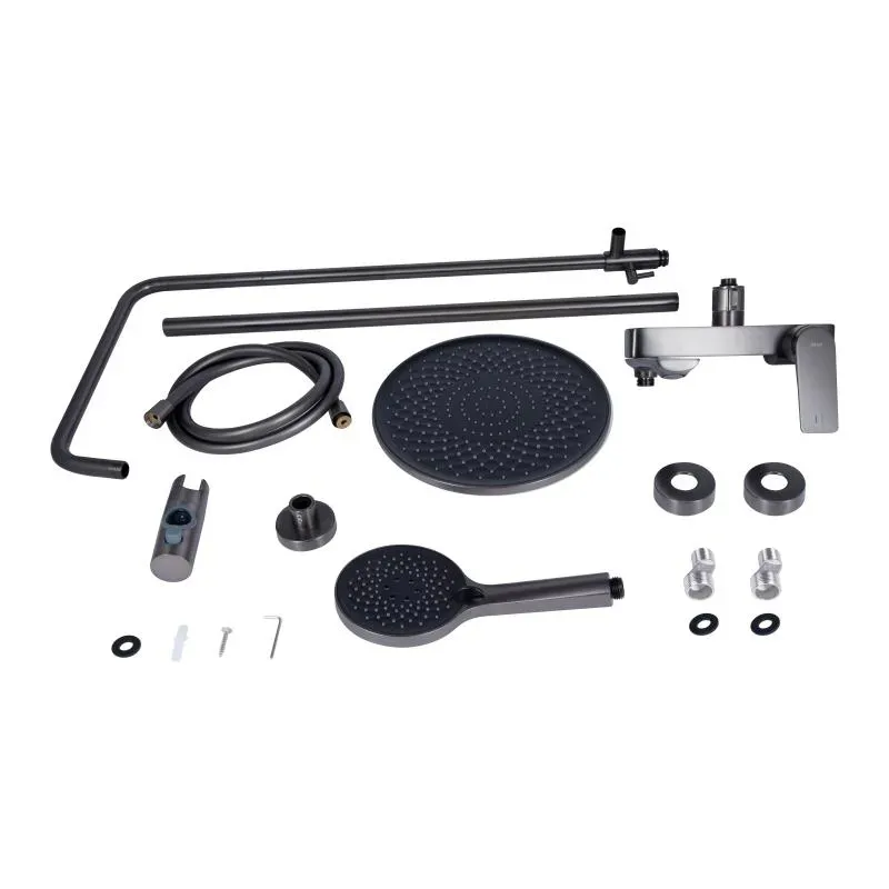 Душова система Qtap Vlasta New QTVLA111GMB45651 у виконанні Gunmetal Black PVD - це стильне та функціональне рішення для ванної кімнати. Система включає верхній душ, ручний душ та вилив для ванни, забезпечуючи зручність та гнучкість використання. Покриття Gunmetal Black PVD відрізняється високою стійкістю до корозії та механічних пошкоджень.