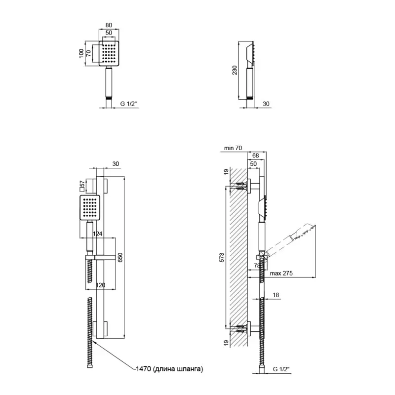 Стійка для душу для ванни з верхнім та ручним душем. У панелі встановлений термостат, що дає можливість вибрати необхідну температуру води, яка буде підтримуватися навіть при перепадах тиску в системі. Виготовляється з латуні з покриттям білого кольору і має стильний дизайн який добре впишеться у вашій ванній кімнаті.