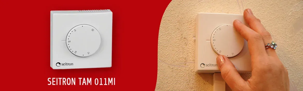 Терморегулятор Seitron TAM 011 — кімнатний регулятор температури накладного типу. Може бути використаний для спільної роботи з інфрачервоними, електричними та газовими обігрівачами і котлами. Діапазон регульованої температури становить від +8 до +30 градусів. Температурний режим підтримується з точністю в 1 градус. Основним елементом приладу є мембранний блок з газовим наповненням, датчик і контакти, що замикаються і розмикаються при певній температурі.