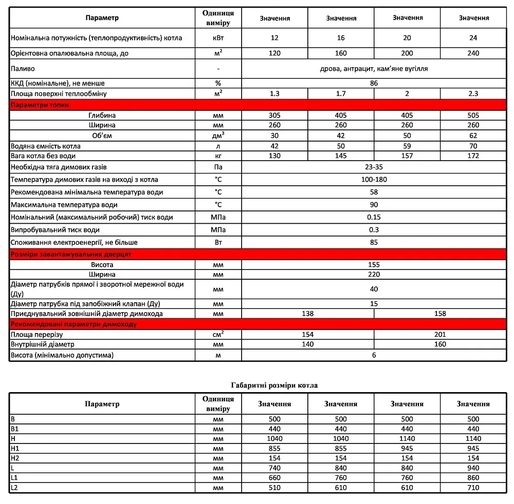 - Номінальна потужність (теплопродуктивність) котла - 16 кВт;