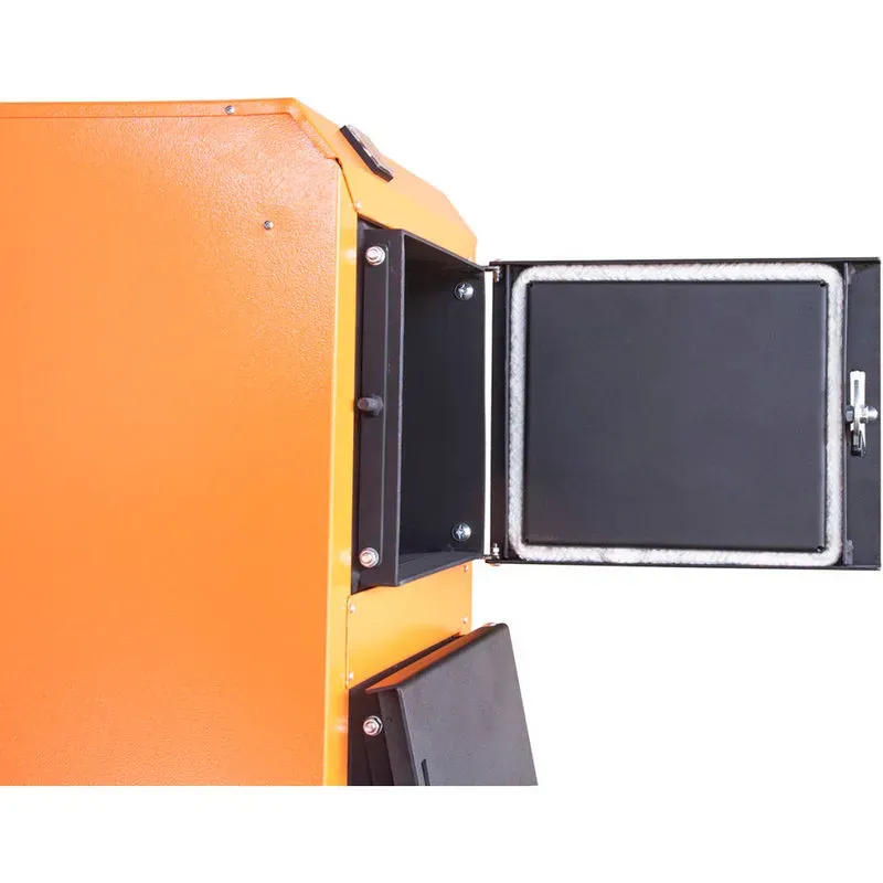 Твердопаливний котел тривалого горіння який працює на будь-якому твердому паливі (антрацит, вугілля, брикет, торф, дрова) і автоматично підтримує температуру теплоносія, задану за допомогою електронного регулятора температури.
