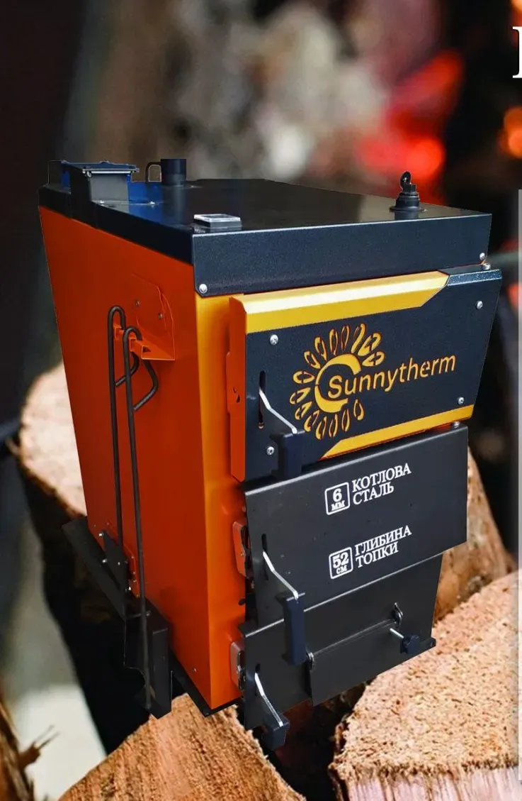 Котел твердопаливний Sunny Therm 12 кВт виготовляється на спеціалізованому українському підприємстві. Дана модель вважається новинкою 2019 року, яка була розроблена з урахуванням всіх вимог і критеріїв, які виставляються до котлів твердопаливних від споживачів. Теплова потужність в 12 кВт покриває для обігріву площі до 120 кв.м. Твердопаливні котли рік за роком впевнено відвойовують свою частку ринку серед опалювальних котлів, що працюють на інших видах У порівнянні з аналогами від інших виробників, котел твердопаливний Sunny Therm 12 кВт має такі плюси і якості: теплообмінник всередині котла зроблений з високоякісної 6 міліметрової сталі; топка збільшена за глибиною, становить 52 см; рівень ККД більше 86%; здатний здійснювати горіння до 4-6 годин на одному завантаженні; всі три дверцяти можна регулювати для здійснення контролю за темпом горіння і регулювання обсягу подаваємого в систему повітря; дуже доступна ціна, в порівнянні з аналогічними котлами від інших виробників в Україні; решітка колосникова виготовлена з чавуну; універсальний за вживаним паливом (дрова і відходи, брикети, вугілля); опціонально, передбачена можливість установки автоматики; заводська гарантія 5 років