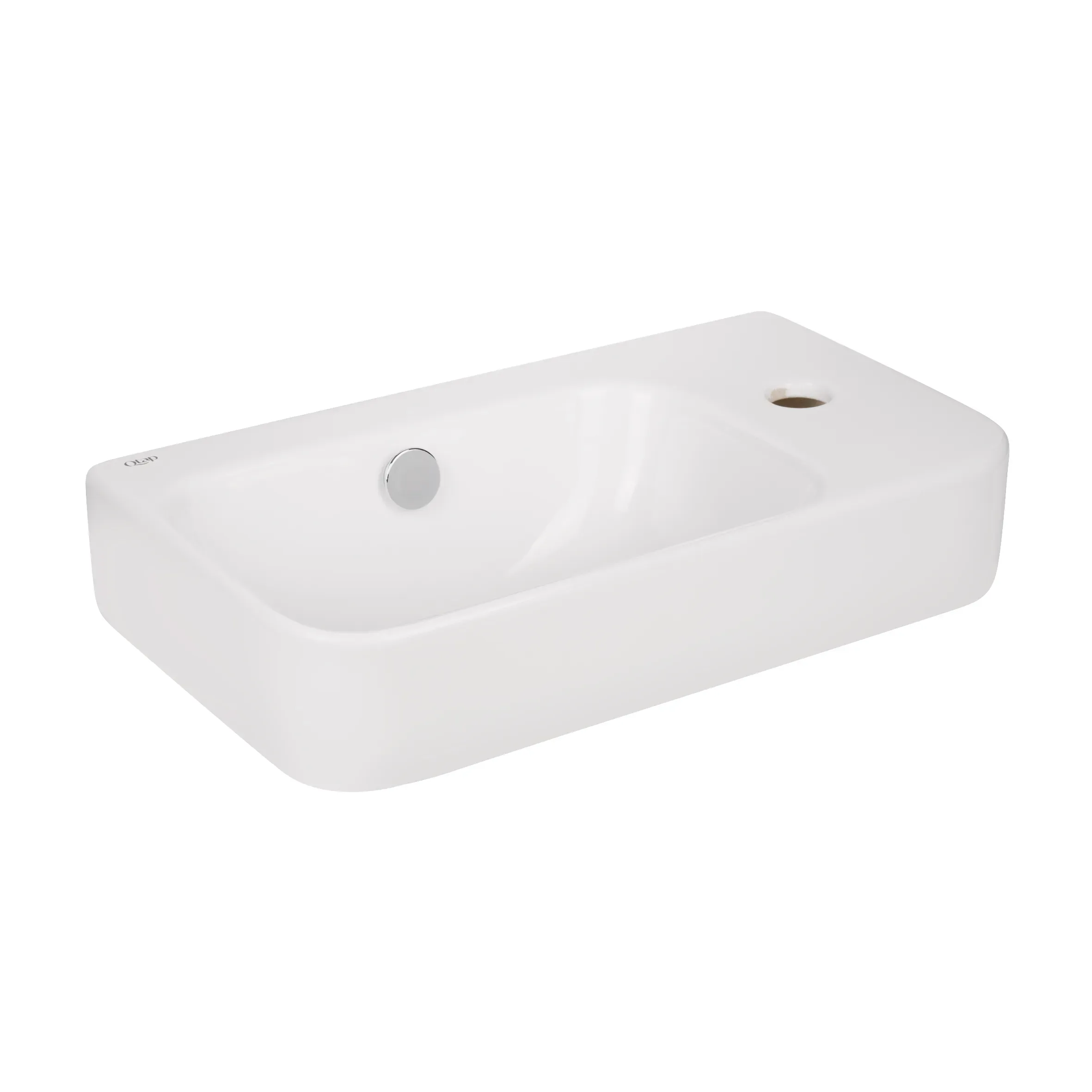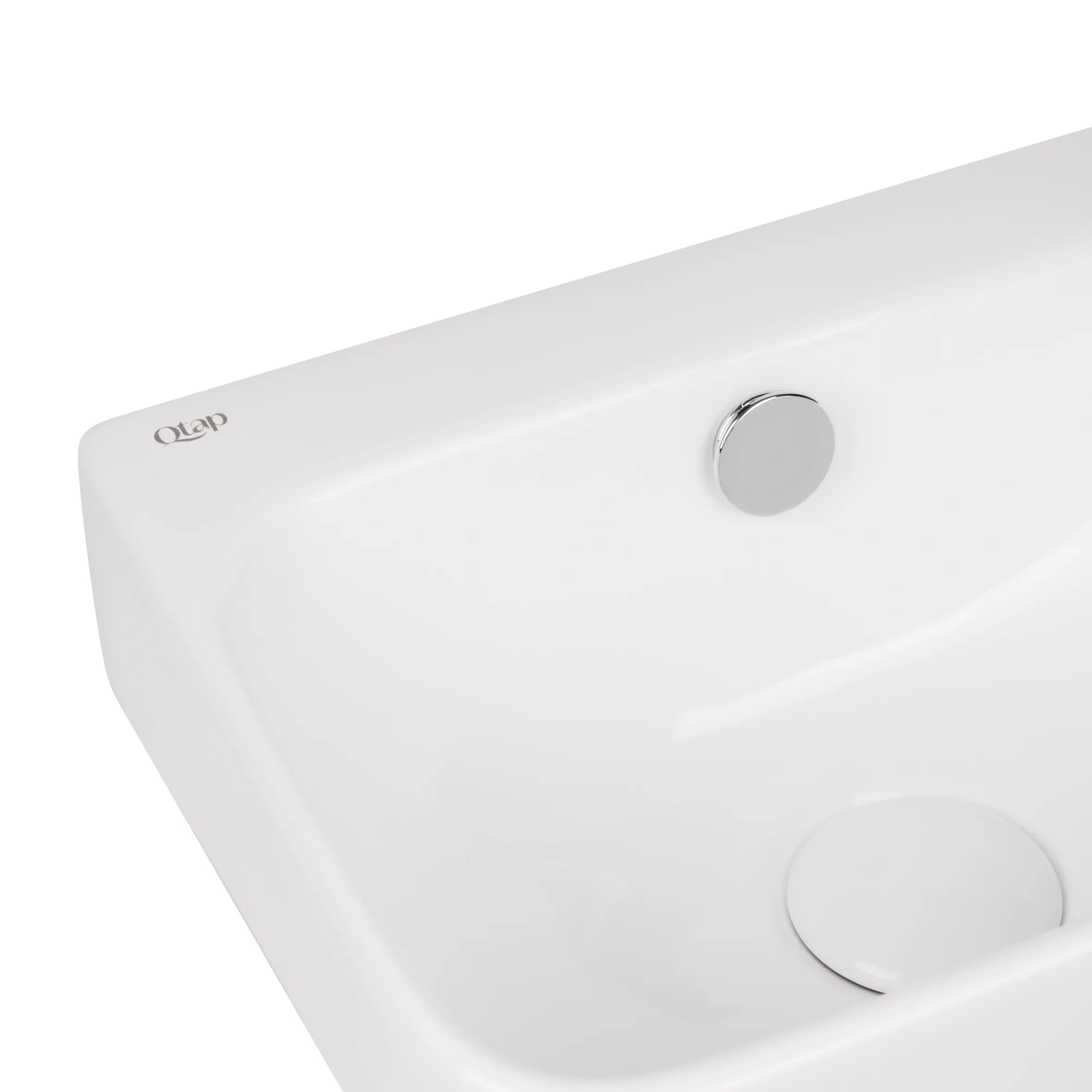 Раковина Qtap Tern QT17115117RW має ергономічну форму, виконана з якісної кераміки білого кольору з отворами для змішувача і переливу. Вона встановлюється на стіну за допомогою кріплень, які входять в комплектацію. Виріб підходить для використання з урізним змішувачем. Завдяки донному клапану, який поставляється разом з раковиною, є можливість наповнювати чашу водою. Сифон для раковини купується окремо.