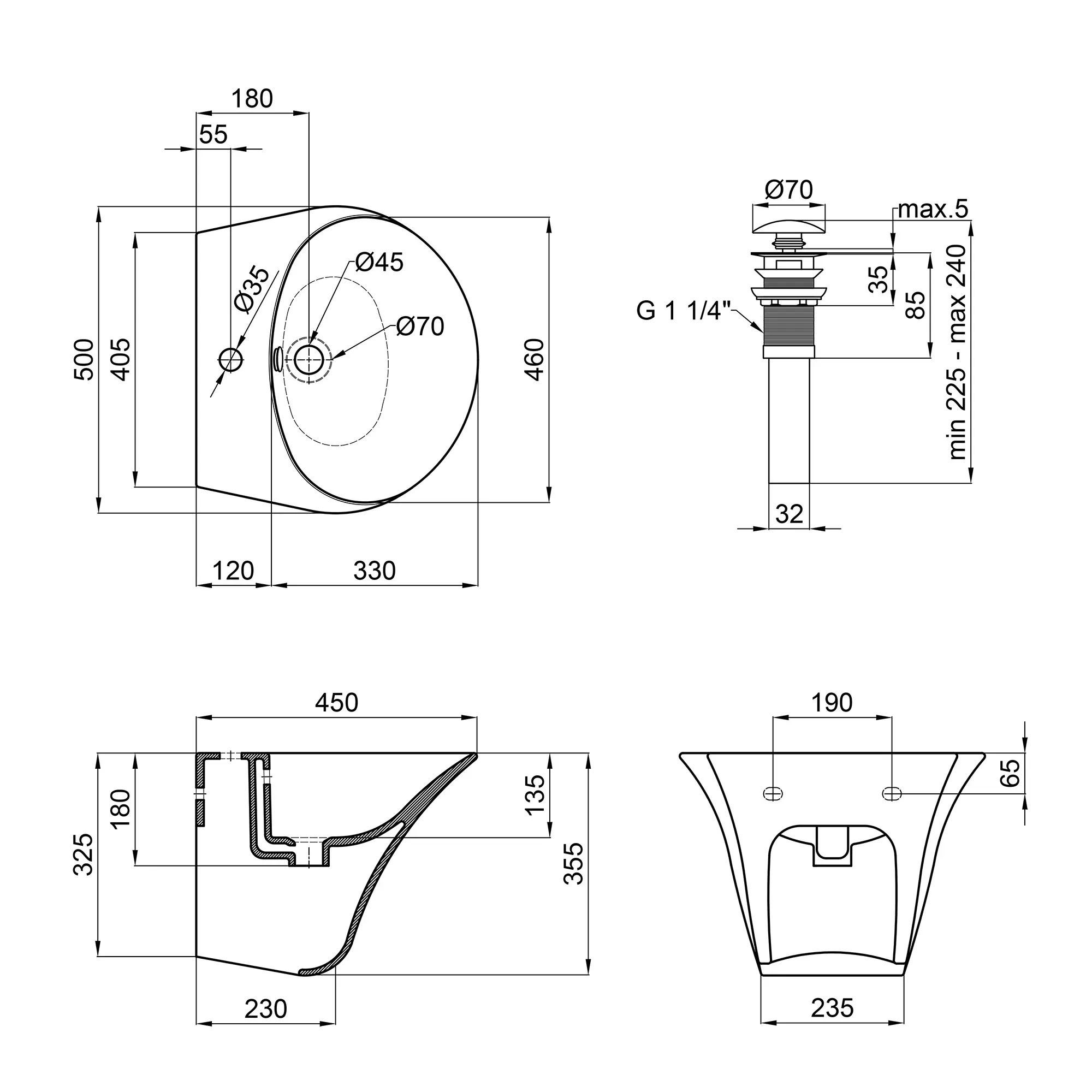 Раковина Qtap Virgo QT1811037GW має ергономічну овальну форму, виконана з якісної кераміки білого кольору з отворами для змішувача і переливу. Вона встановлюється на стіну за допомогою кріплень, які входять в комплектацію. Виріб підходить для використання з урізним змішувачем. Завдяки донному клапану, який поставляється разом з раковиною, є можливість наповнювати чашу водою. Сифон для раковини купується окремо.