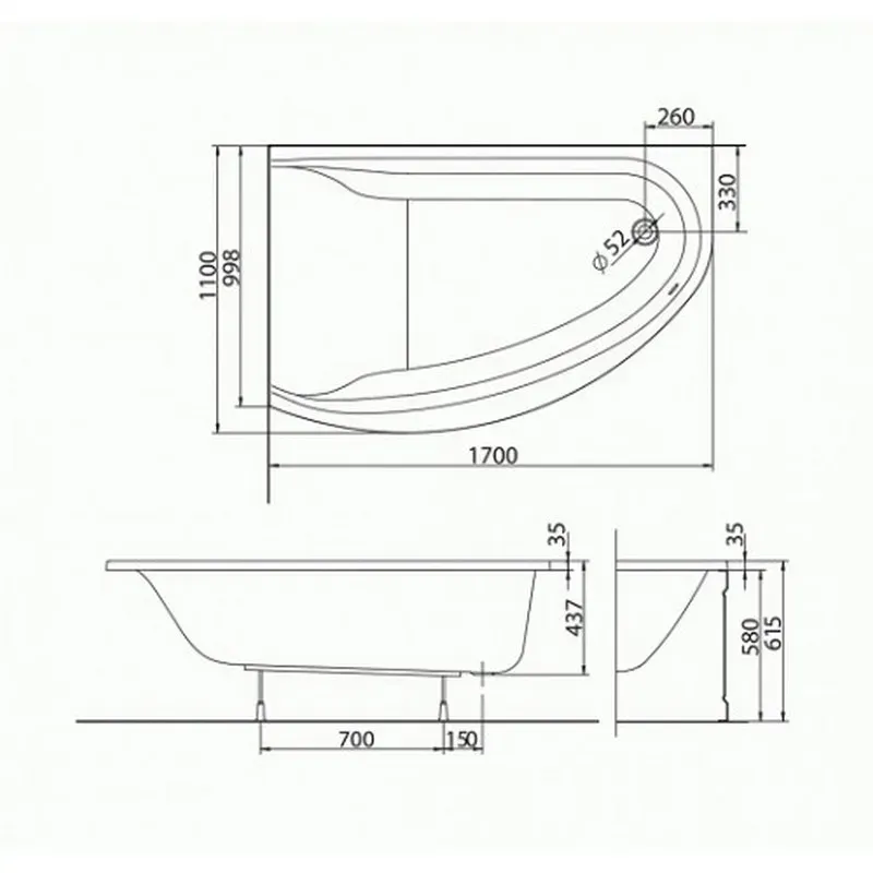 Ванна акрилова 170 х 110 KOLO MIRRA кутова ліва з ніжками