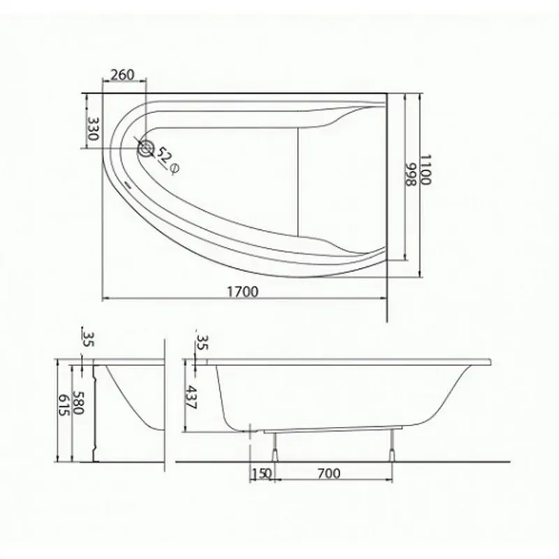 Ванна акрилова 170 х 110 KOLO MIRRA кутова права з ніжками та підголовником