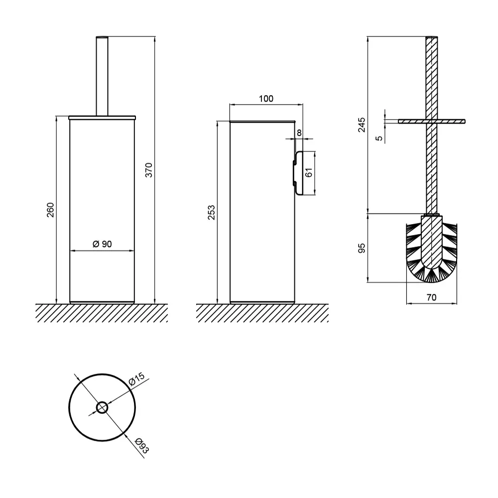 Йоржик для унітаза Qtap Liberty BLM 1150 має циліндричну форму і кріпиться на стіні на необхідній висоті. У металевий циліндр додатково вставляється пластикова ємність для більш зручного миття. Йоржик виготовлений з високоякісної латуні, тому він не піддається корозії. Міцна ручка не гнеться, зручна у використанні, з вбудованою кришкою, яка запобігає поширенню неприємного запаху завдяки щільному приляганню до колби.