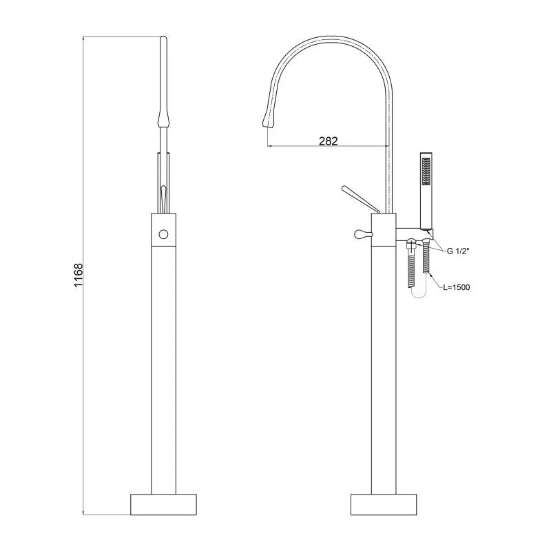 Змішувач для ванни qtap virgo підлоговий з поворотним виливом (з душовим гарнітуром) qt1966103c chro