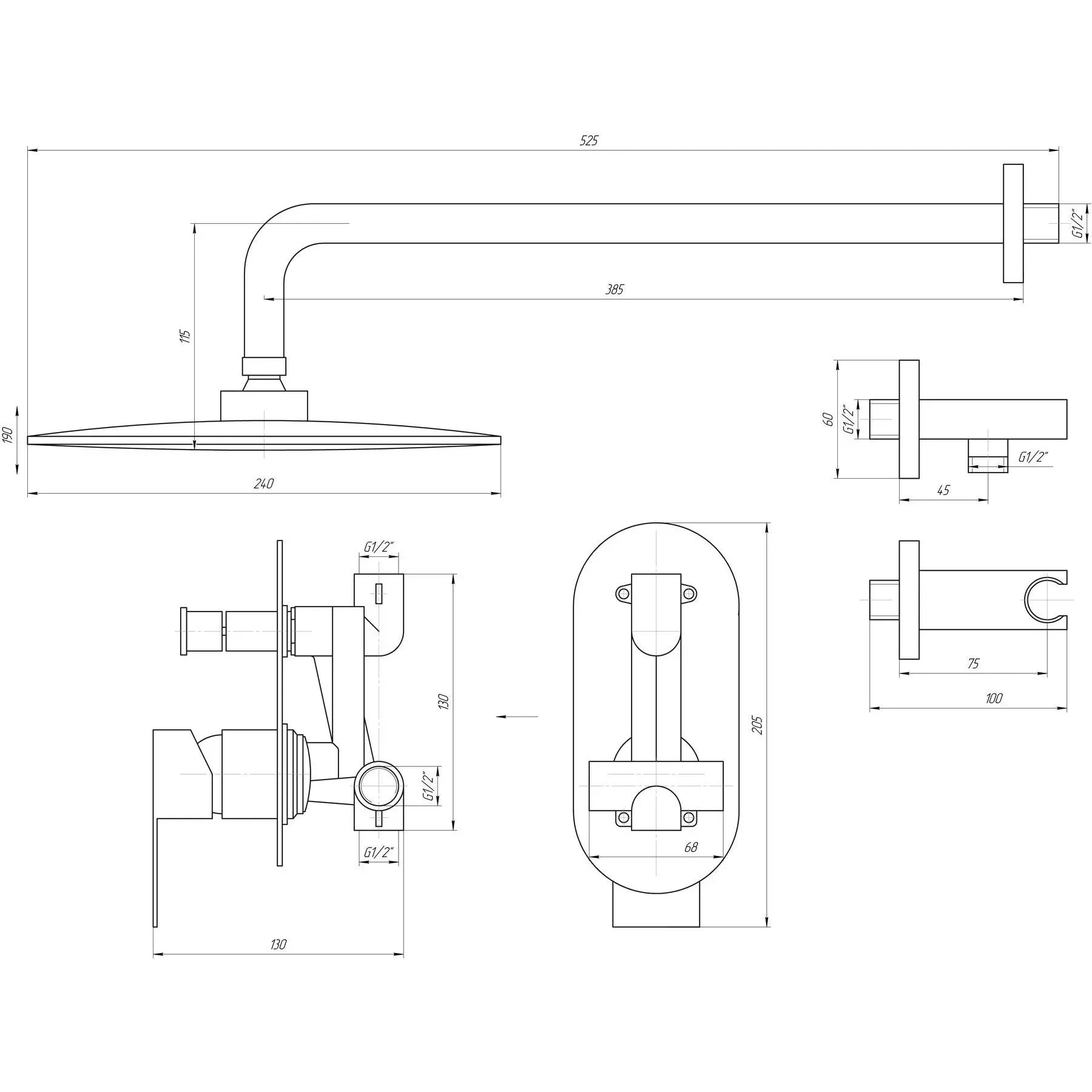Душова штанга для верхньої лійки, монтаж зі стіни