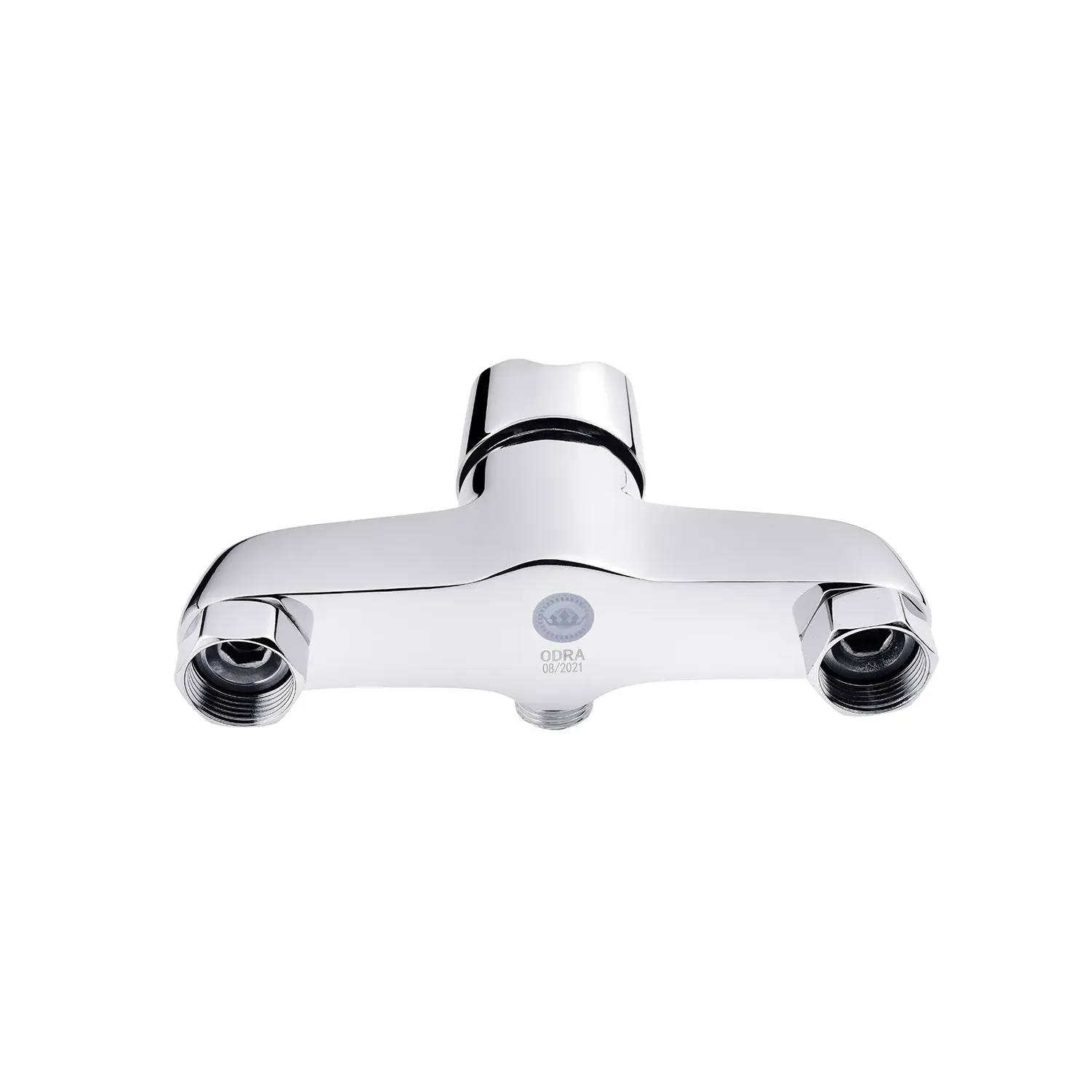 Змішувач для душу Kroner KRM Odra - C050 - це втілення стилю і функціональності. Завдяки гладкій і блискучій поверхні у хромованому кольорі, він привносить сучасний блиск до вашого інтер'єру. Виготовлений з високоякісного силуміну, змішувач гарантує довговічність та стійкість. Картриджний механізм змішування забезпечує плавне регулювання температури. Змішувач має круглу форму лійки. Настінний монтаж зберігає простір. Змішувач Kroner поєднує в собі естетику і практичність, створюючи ідеальний аксесуар для вашої душової кабіни.