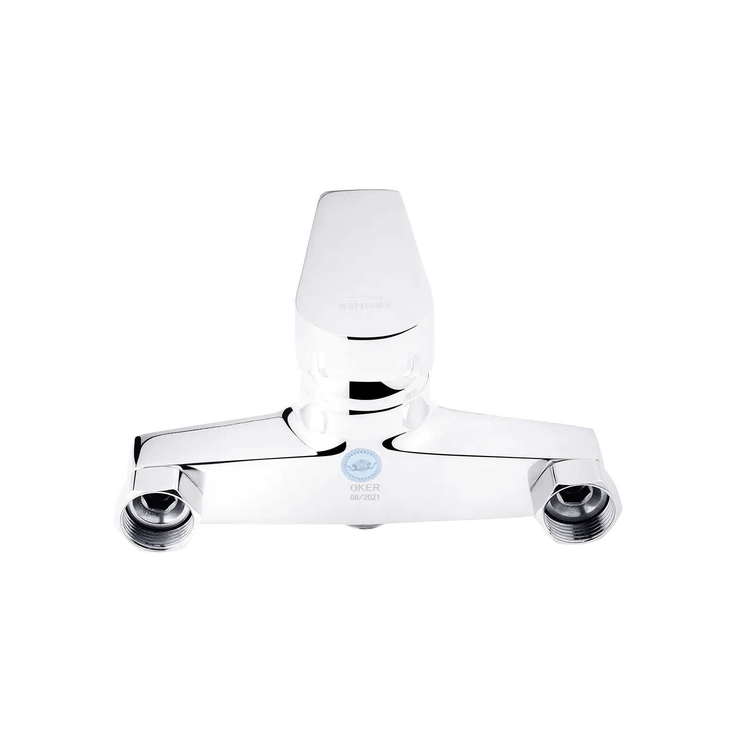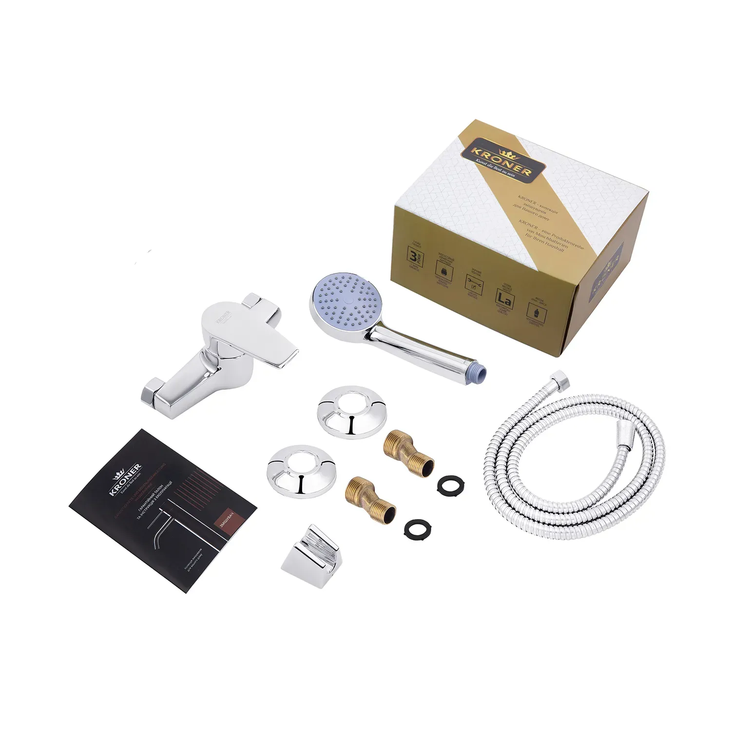 Змішувач для душу Kroner KRM Oker - C050 - це втілення стилю і функціональності. Завдяки гладкій і блискучій поверхні у хромованому кольорі, він привносить сучасний блиск до вашого інтер'єру. Виготовлений з високоякісного силуміну, змішувач гарантує довговічність та стійкість. Картриджний механізм змішування забезпечує плавне регулювання температури. Змішувач має круглу форму лійки. Настінний монтаж зберігає простір. Змішувач Kroner поєднує в собі естетику і практичність, створюючи ідеальний аксесуар для вашої душової кабіни.
