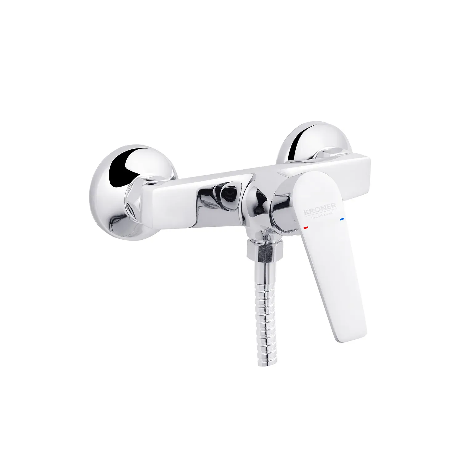 Змішувач для душу Kroner KRM Eifel - C050 - це втілення стилю і функціональності. Завдяки гладкій і блискучій поверхні у хромованому кольорі, він привносить сучасний блиск до вашого інтер'єру. Виготовлений з високоякісної латуні, змішувач гарантує довговічність та стійкість. Картриджний механізм змішування забезпечує плавне регулювання температури. Змішувач має круглу форму лійки. Настінний монтаж зберігає простір. Змішувач Kroner поєднує в собі естетику і практичність, створюючи ідеальний аксесуар для вашої душової кабіни.