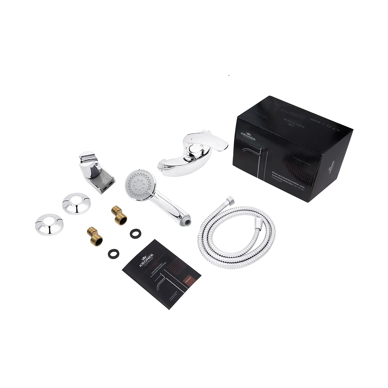 Змішувач для душу Kroner KRM Konstante - C050 - це втілення стилю і функціональності. Завдяки гладкій і блискучій поверхні у хромованому кольорі, він привносить сучасний блиск до вашого інтер'єру. Виготовлений з високоякісної латуні, змішувач гарантує довговічність та стійкість. Картриджний механізм змішування забезпечує плавне регулювання температури. Змішувач має круглу форму лійки. Настінний монтаж зберігає простір. Змішувач Kroner поєднує в собі естетику і практичність, створюючи ідеальний аксесуар для вашої душової кабіни.