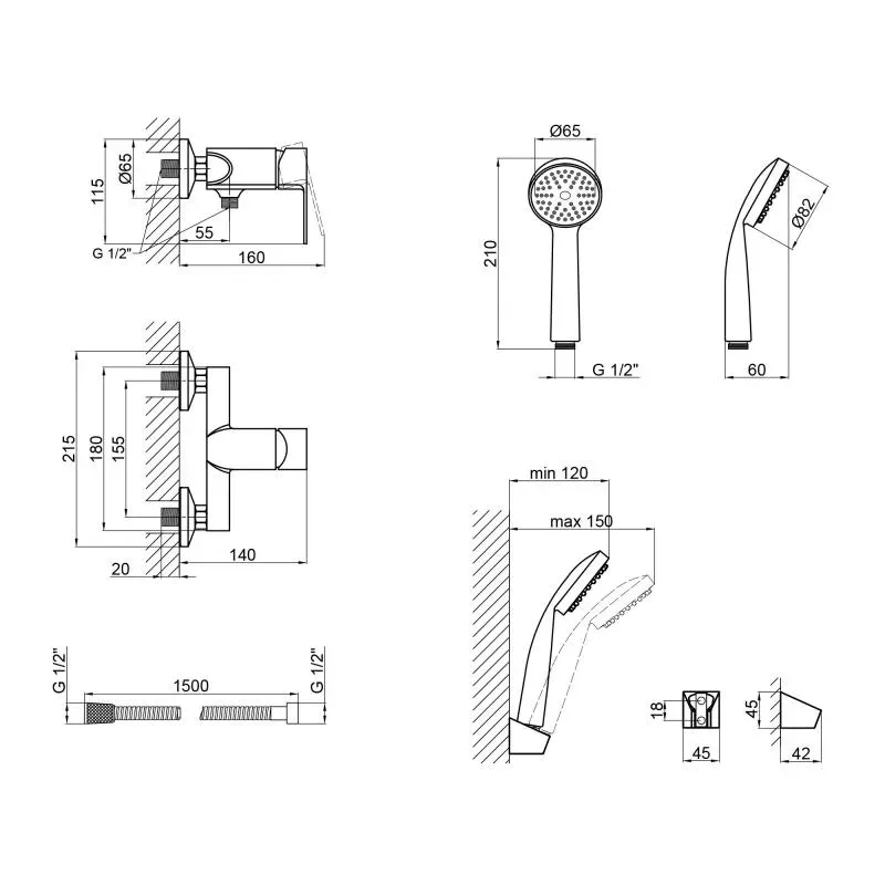 Змішувач для душу Lidz (CRM) 19 46 010 виконаний з цинку з глянцевою блискучою поверхнею. Він і тримач ручного душу монтуються на стіну. Декоративні розетки приховають похибки установки на обробці ванної кімнати. Подача води здійснюється завдяки повороту важеля в потрібне положення.