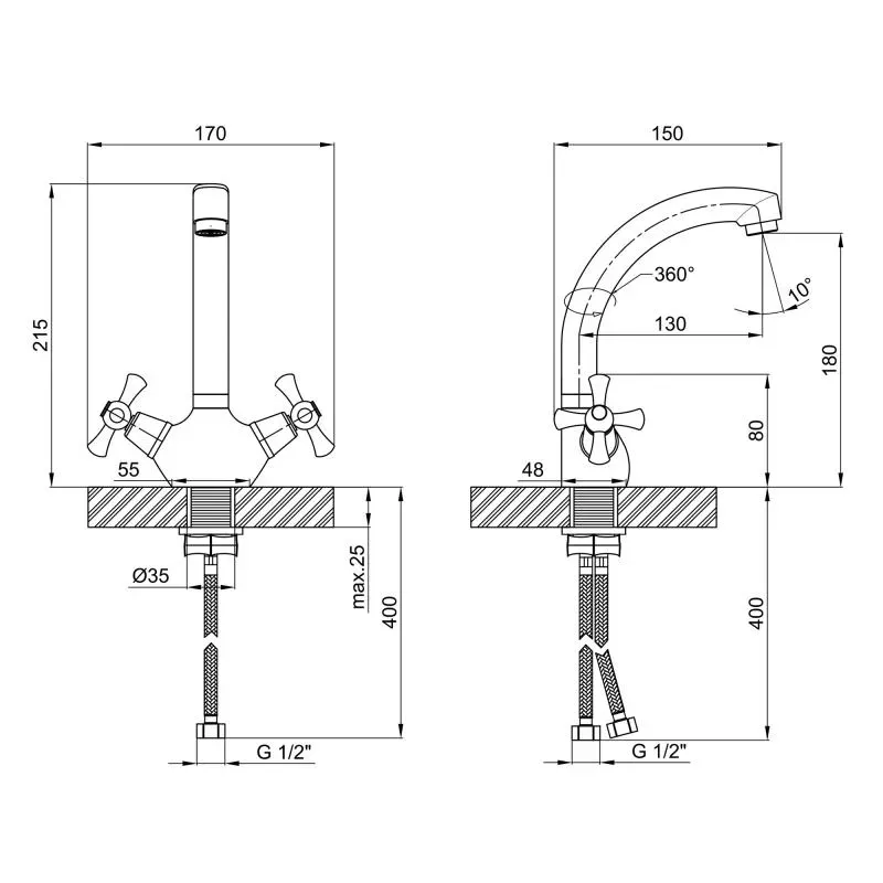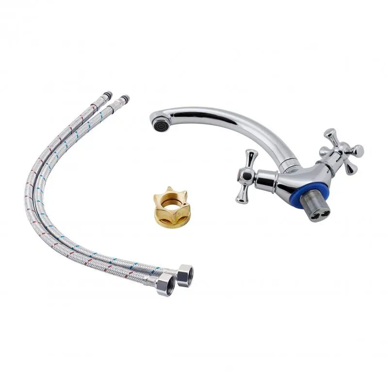 Змішувач для кухні Lidz (CRM) 75 21 271F-2 виготовлений з цинку. Завдяки глянсовому хромованому покриттю має оригінальний зовнішній вигляд. Виконаний в класичному стилі, з вентильними ручками для перемикання потоку холодної та гарячої води.