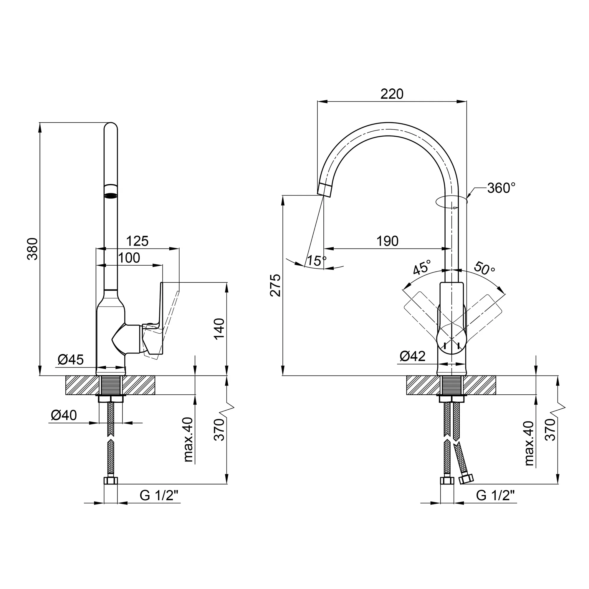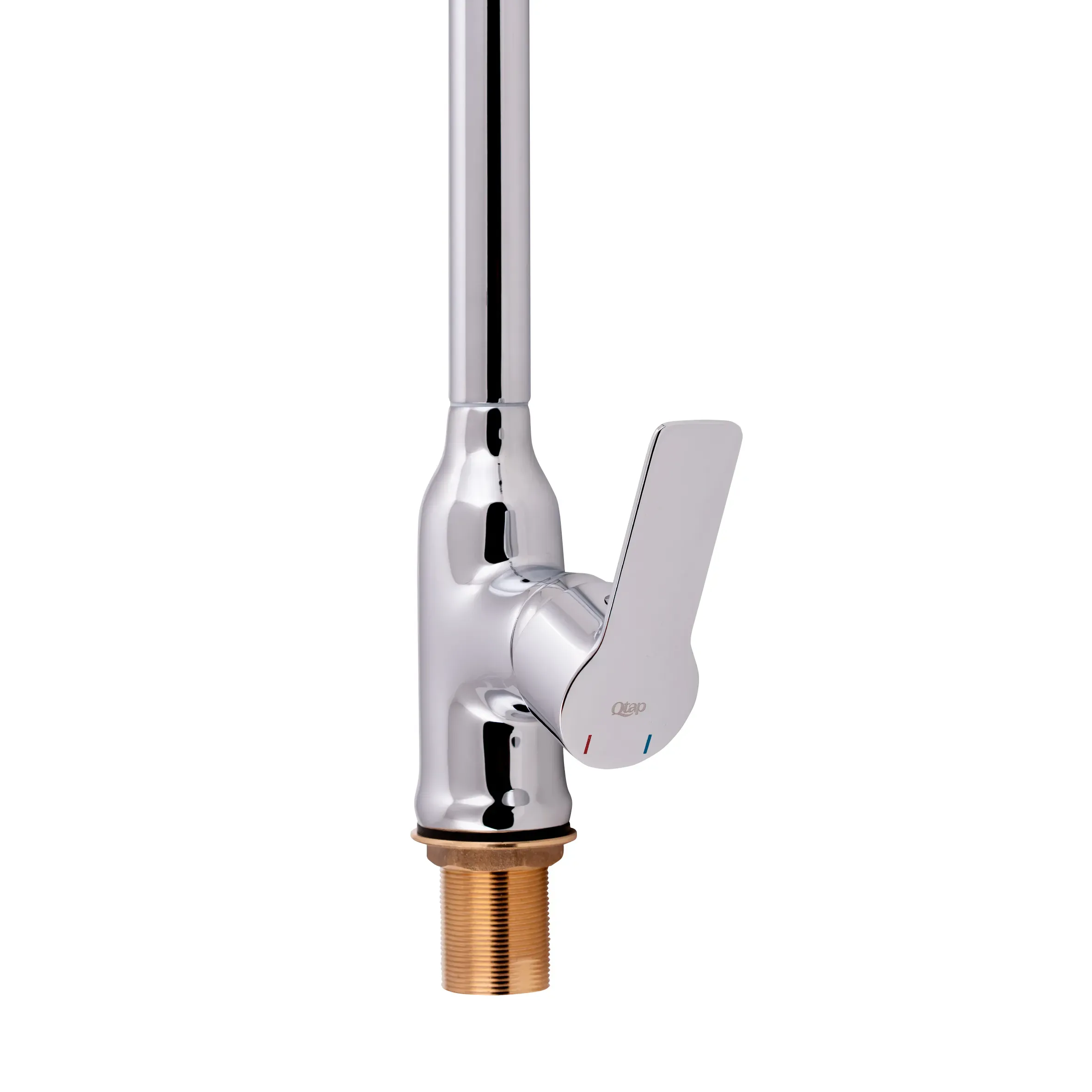 Змішувач для кухні Qtap Alza 9051104UC виготовлено з високоякісної харчової латуні, що стійка до впливу корозії, ударів і появи тріщин. Глянцеве хромоване покриття не тільки підвищує довговічність змішувача, а й надає йому привабливості. Змішувач має одноважільне керування, за допомогою якого можна відрегулювати температуру і напір води. Змішувач виконано в сучасному стилі, він ідеально доповнить інтер‘єр кухні.